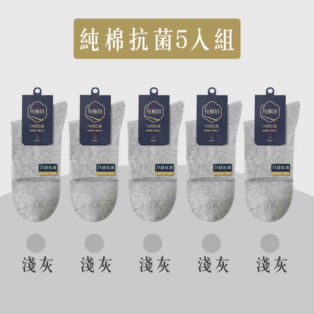 【JAR嚴選】7A抗菌精梳棉中筒吸汗透氣襪子5入組-淺灰5雙
