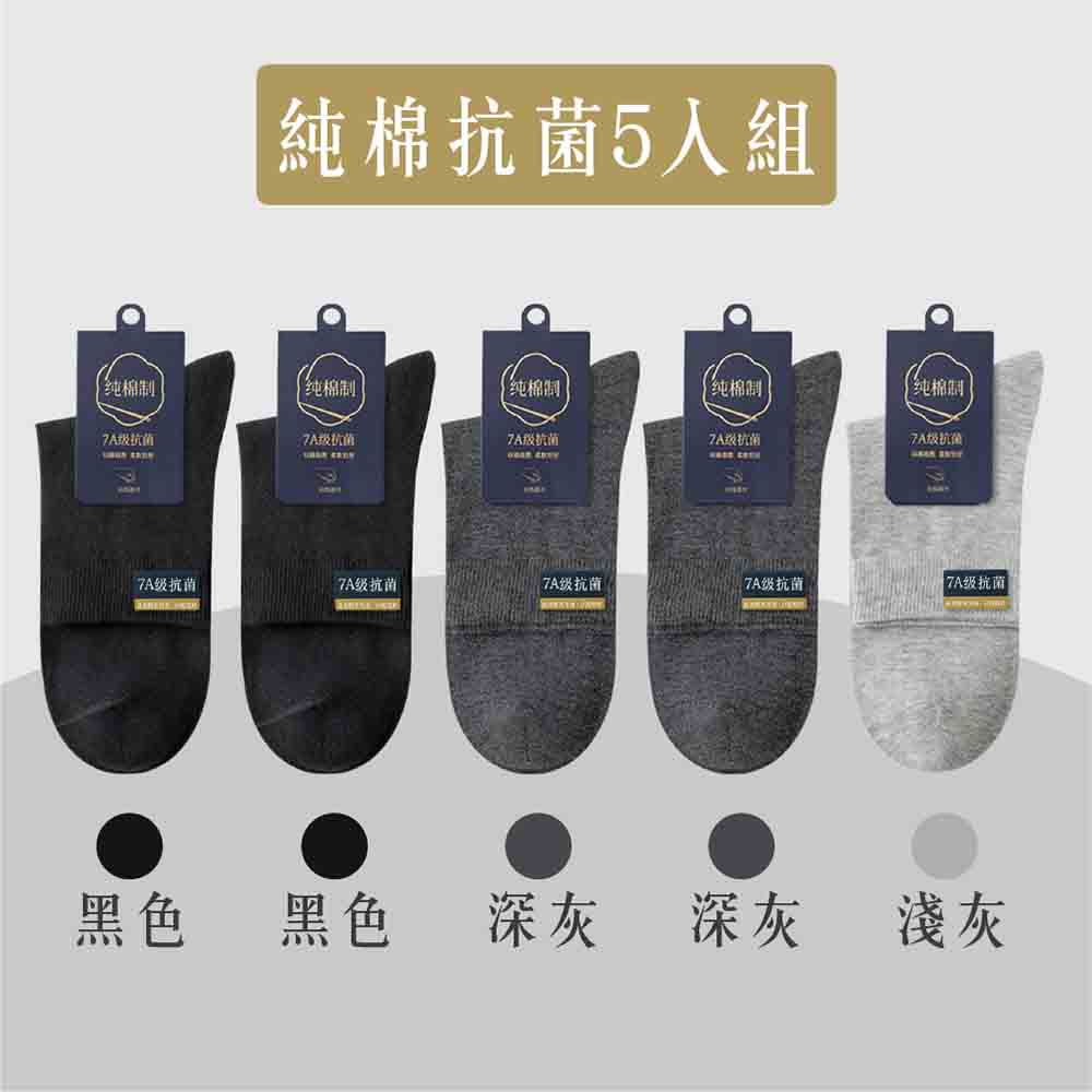【JAR嚴選】7A抗菌精梳棉中筒吸汗透氣襪子5入組-黑色2雙+深灰2雙+淺灰1雙