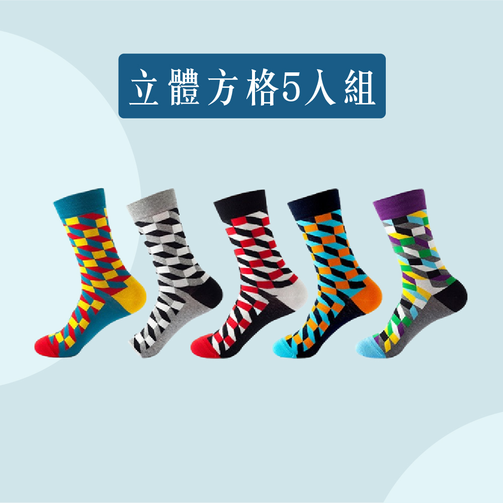 【JAR嚴選】INS男女情侶款潮流時尚圖案趣味個性中筒襪子5入組-立體方格5入組