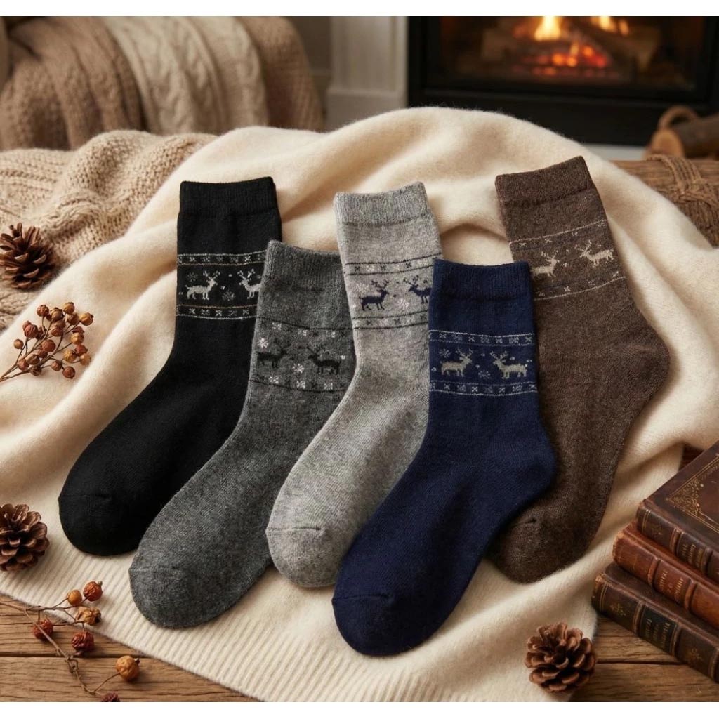 凱美棉業|冬日必備🔥(男款)精緻保暖毛襪 防寒襪 保暖襪 毛襪 長襪 冬天襪-麋鹿提花款