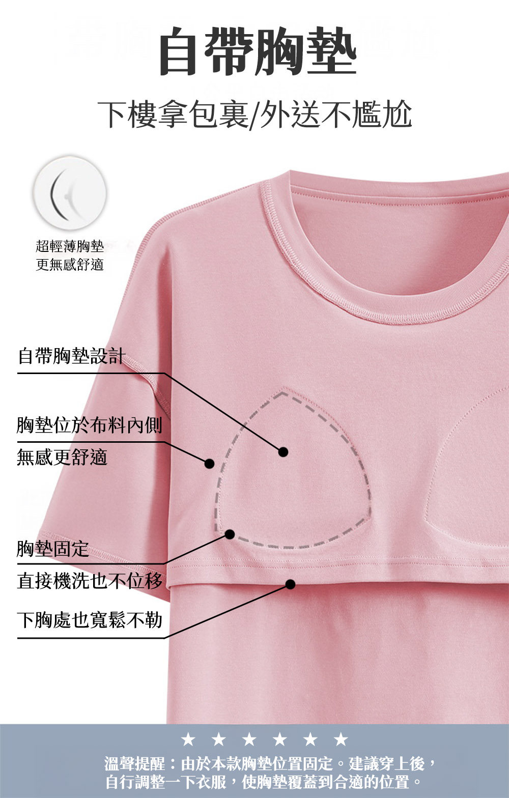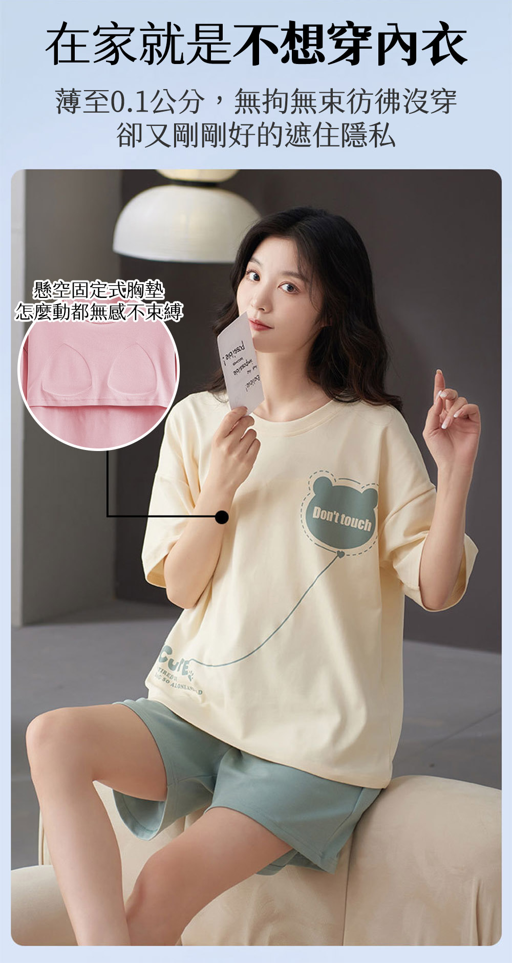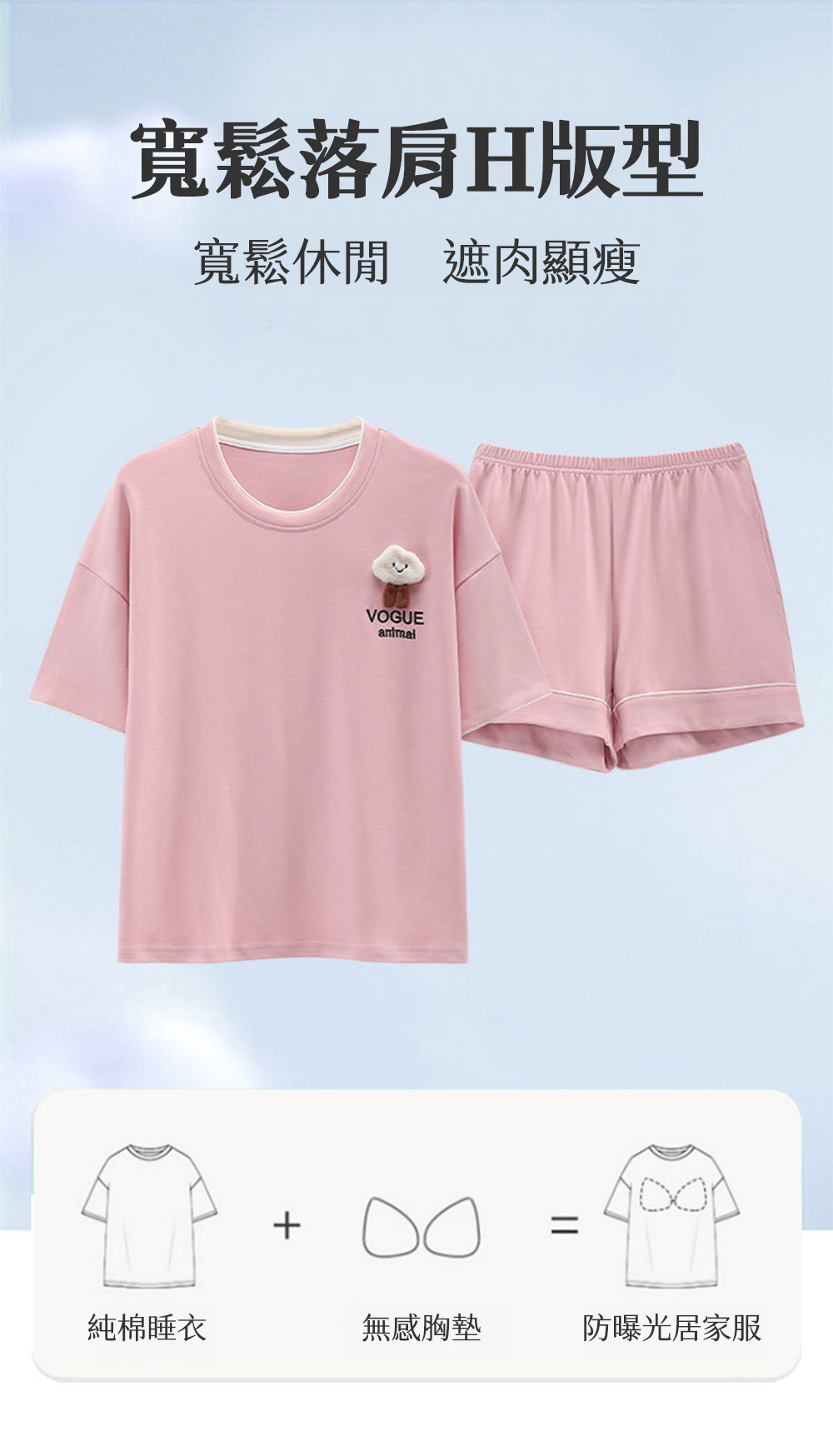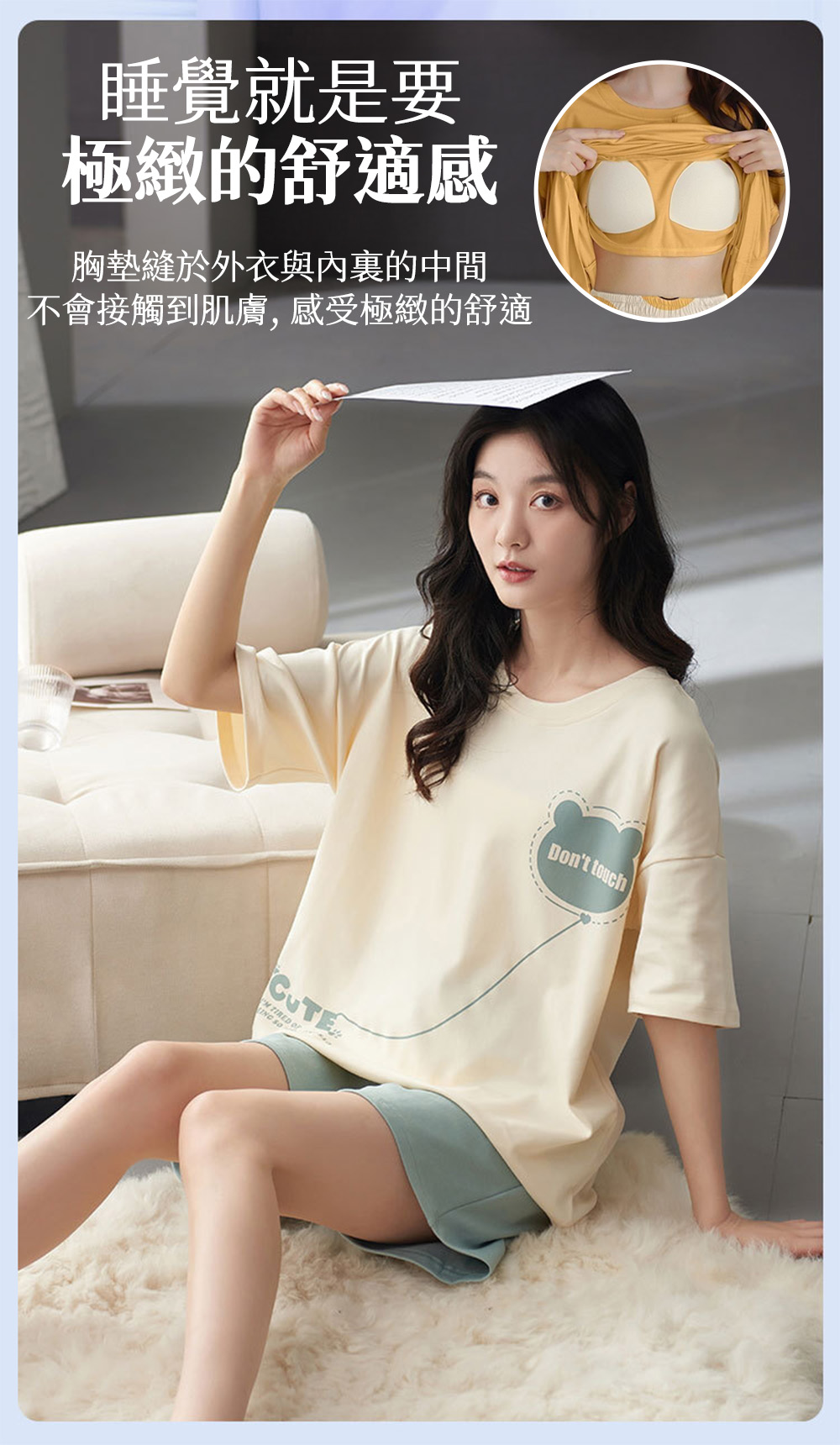 自帶胸墊居家服【L/XL/XXL】睡衣 居家服 固定式胸墊 可機洗 自帶胸墊 寬鬆睡衣 寬鬆居家服 胸墊 落肩 寬版 寬鬆 固定式