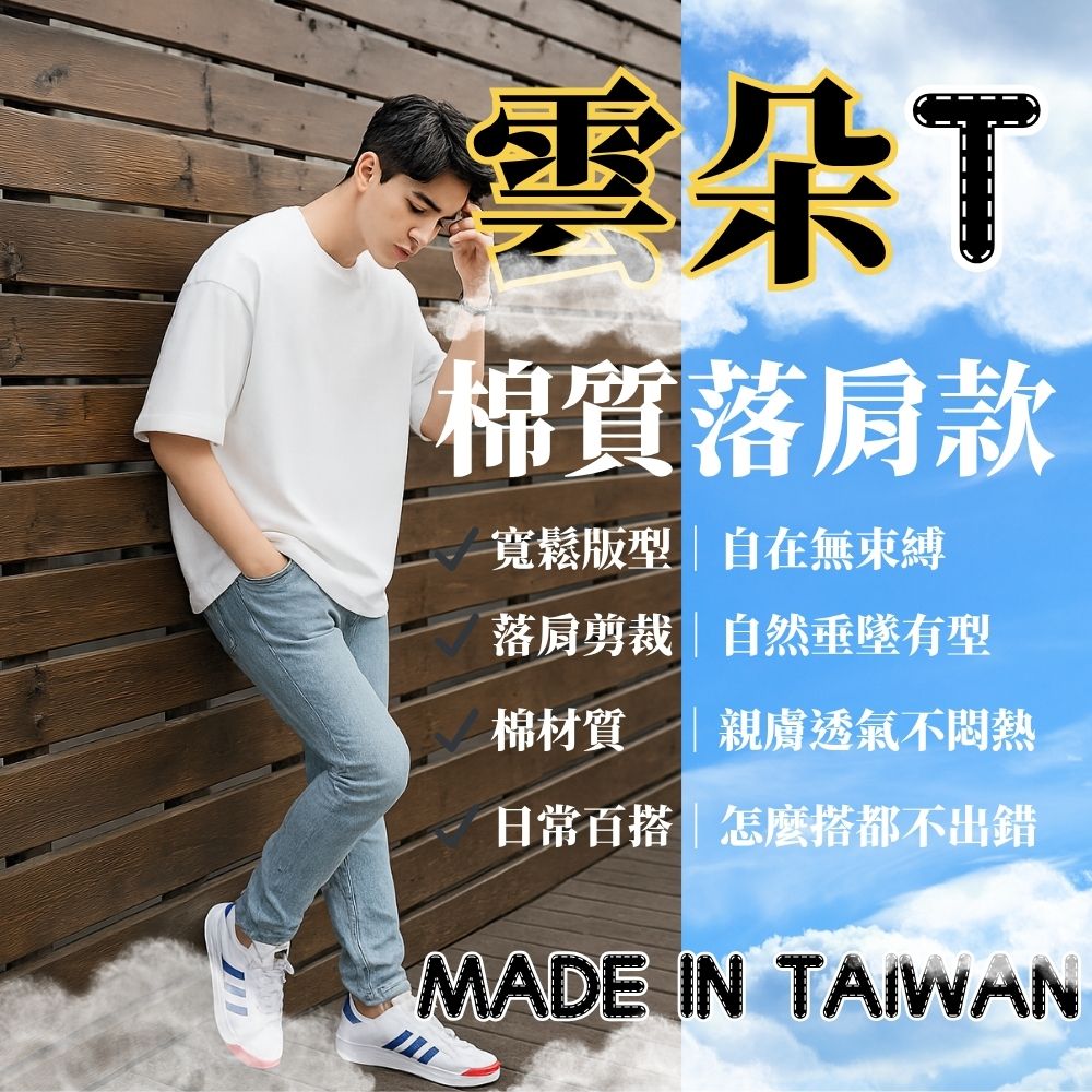 【億子洪】SGS 特製款 MIT台灣製 落肩素T 黑-M 【雲朵T】