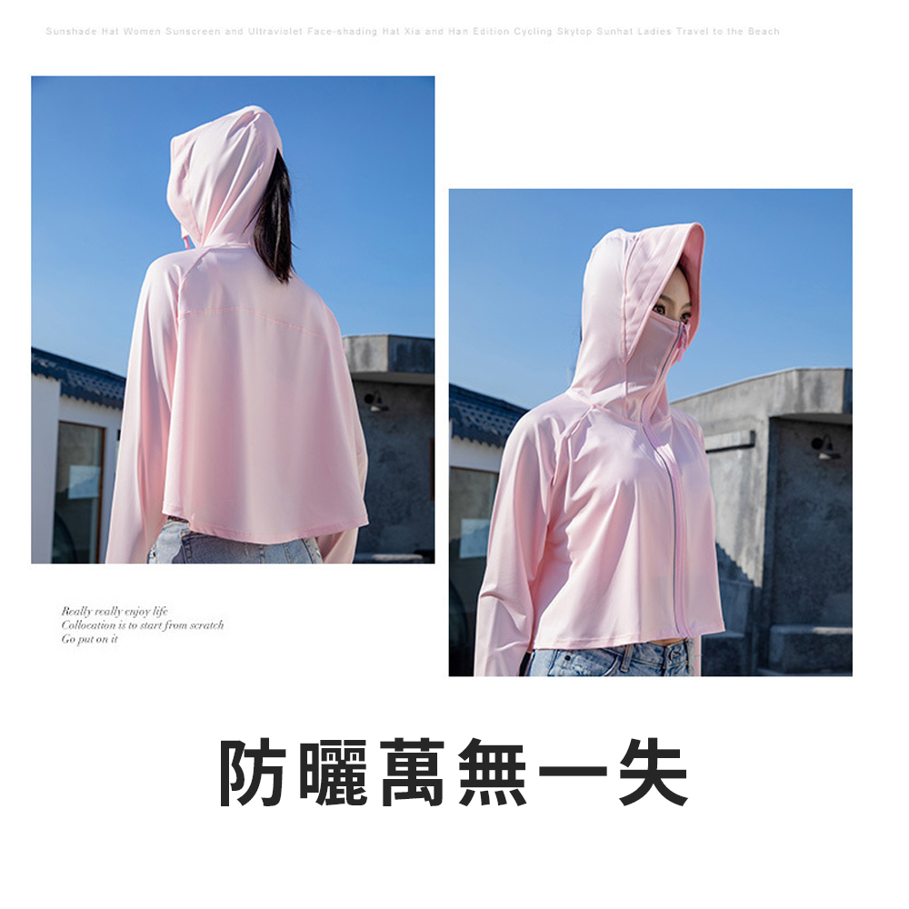 🧊穿比不穿還要涼🧊ONE牌同工廠 冰絲涼感短版連帽外套 乾爽 防曬 面罩 袖口洞 冰涼外套 抗UV 防風 紫外線 遮陽
