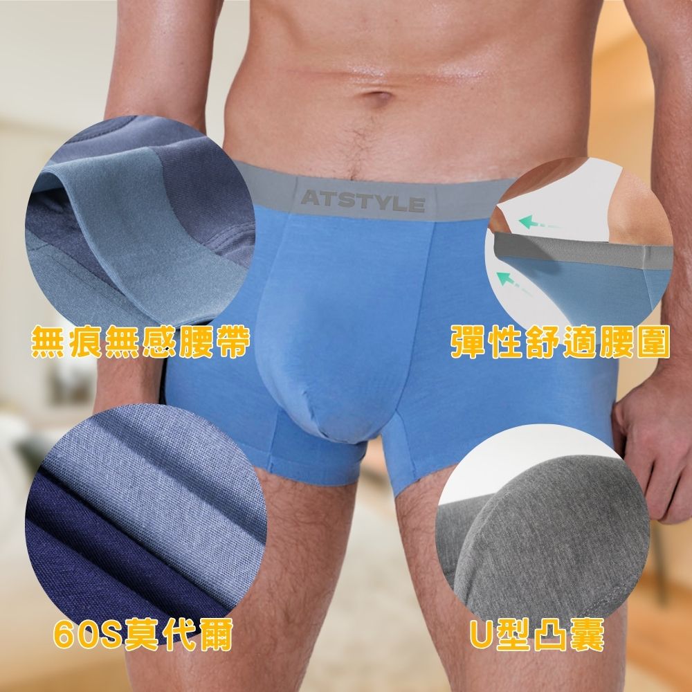 【億子洪】頂級莫代爾男生內褲 石墨希內褲 無痕四角褲 深藍色-3XL 【ATCK】