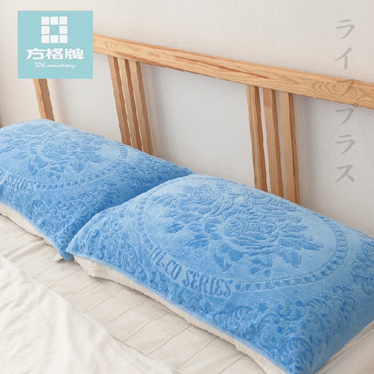絨面緹花枕巾-80x48cm-2條入x1包-藍色-1包