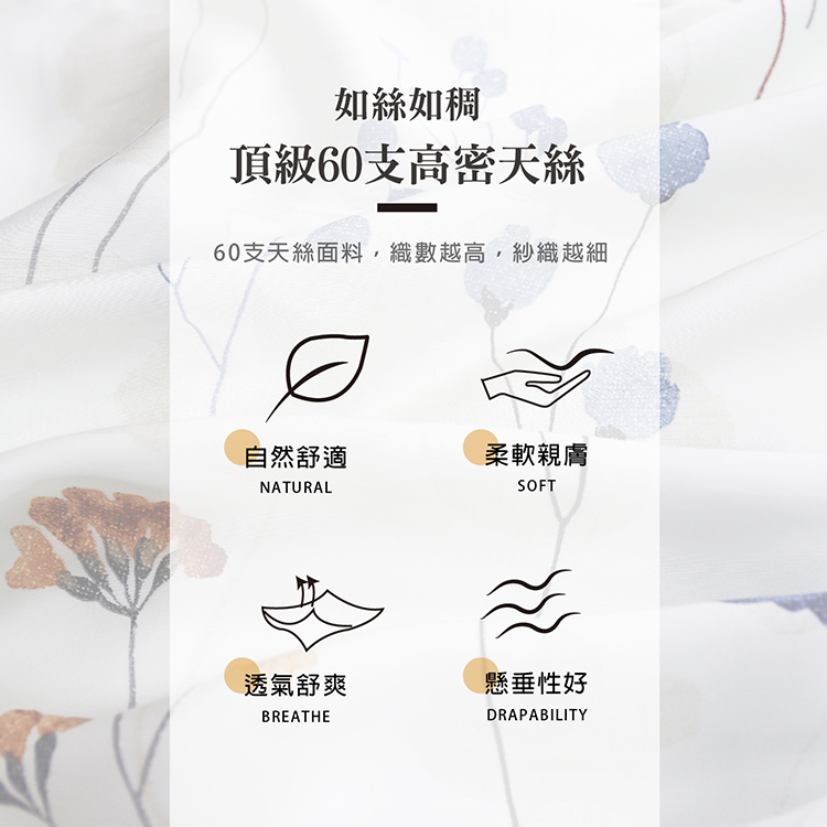 ★材質:表布:100%萊賽爾纖維(60支頂級天絲)底布─100%萊賽爾纖維(60支頂級天絲)