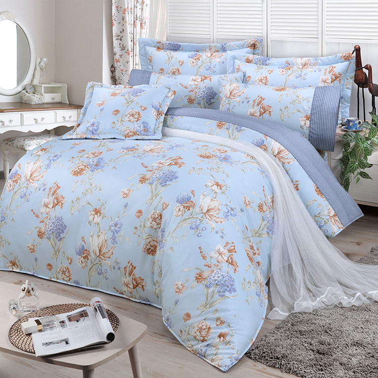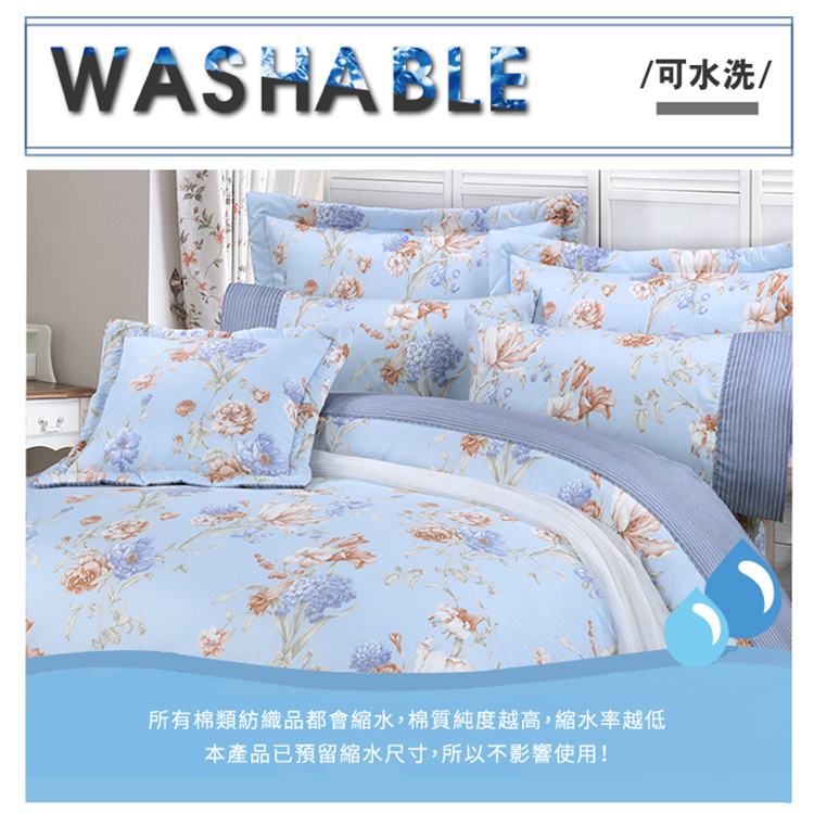 【多利寶寢具】FITNESS 精梳棉雙人加大四件式兩用被床包組-嫚花沁語-藍