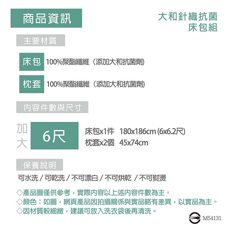 ★材質:床包表布-100%聚酯纖維(添加大和抗菌劑)枕套表布-100%聚酯纖維(添加大和抗菌劑)★產地:中國