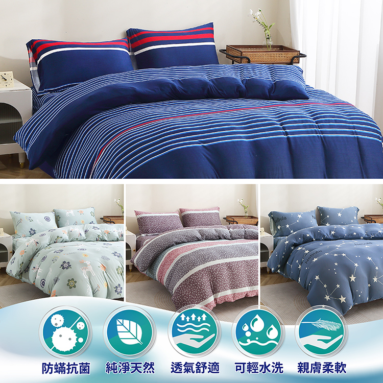 ★材質:【床包】表布-100%聚酯纖維(添加大和抗菌劑)【枕套】表布-100%聚酯纖維(添加大和抗菌劑)、底布-100%聚酯纖維(添加大和抗菌劑)【兩用被】表布-100%聚酯纖維(添加大和抗菌劑)、底布-100%聚酯纖維(添加大和抗菌劑)、填充物-100%聚酯纖維