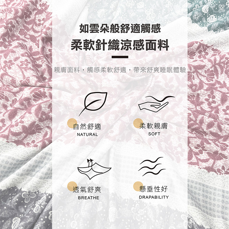 ★針織面料柔軟細緻透氣舒適★全繞式床包包覆性更佳★絲滑柔順觸感,細膩自然光澤★表布日本大和抑菌防臭加工