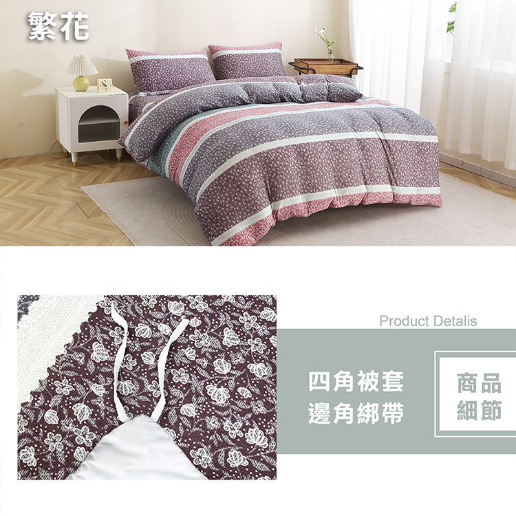 ★內容件數與尺寸:◆【雙人】床包x1件-5x6.2尺(150x186cm) 、枕套x2個(45x74cm)、兩用被套x1件-6x7尺 (180x210cm)★產品圖僅供參考,實際內容以上述內容件數為主。★顏色:如圖,網頁產品因拍攝關係,與實品略有差異,實品顏色更佳。★清潔保養方式:可水洗╱可乾洗╱不可漂白╱不可烘乾╱不可熨燙★因材質較細緻,建議可放入洗衣袋後再清洗