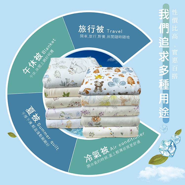 ★特色:★涼感降溫、節能環保、清洗簡單★搭配空調涼感加倍★響應環保節能的愛地球活動,具有涼感降溫、吸濕乾爽功能,清涼節能比一般布料有效降低溫度,讓使用者感到舒適涼爽,同時符合環保節能的需求★快速排除濕氣,乾爽不黏膩★夏日必備涼爽商品★一被多用,方便攜帶