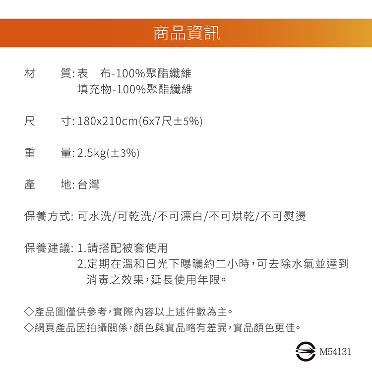 【尺寸】6*7尺 (180x210cm)2.5公斤±3%