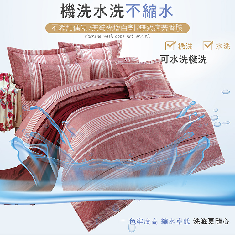 【多利寶寢具】FITNESS 精梳棉雙人特大七件式床罩組-安德里-紅
