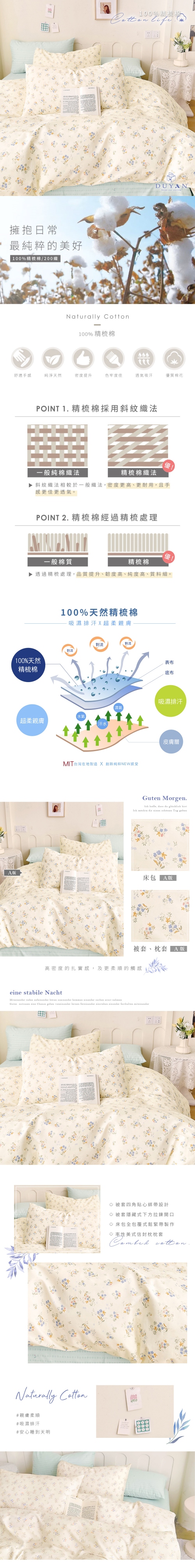 【DUYAN 竹漾】40支精梳棉雙人床包三件組 / 青芷香盈 台灣製