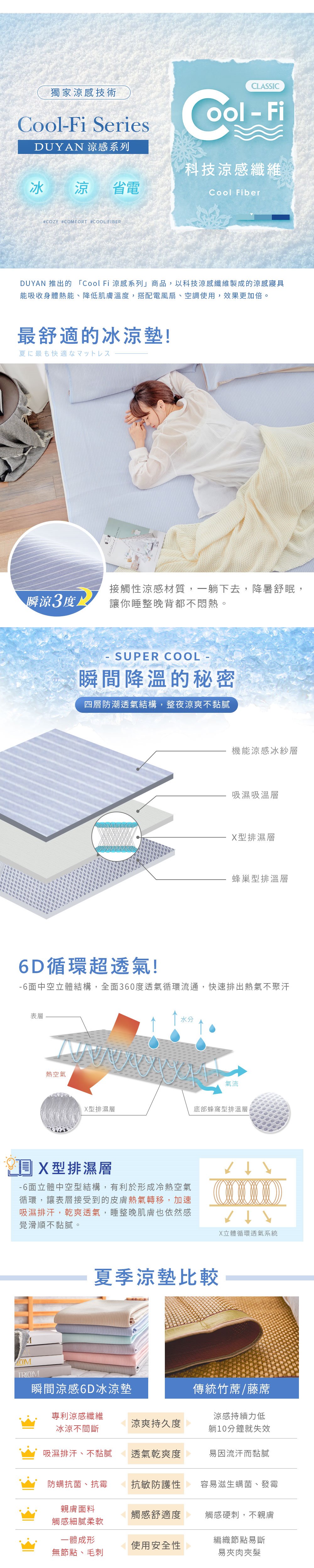【DUYAN 竹漾】Cool-Fi 瞬間涼感6D冰涼墊 / 單人/雙人/加大 / 多款任選