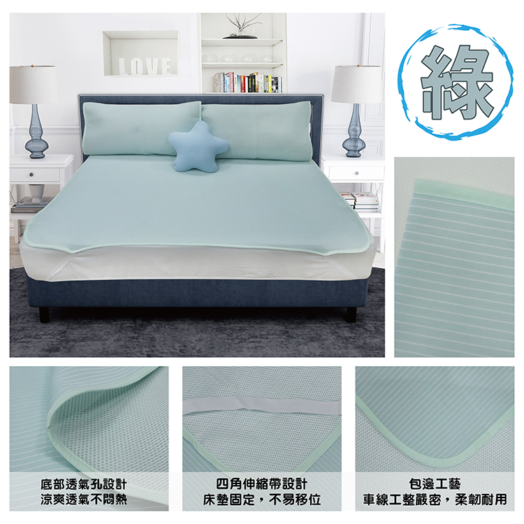 【多利寶寢具】INDIAN 簡約條紋涼感紗冰晶COOL涼墊-單人-綠