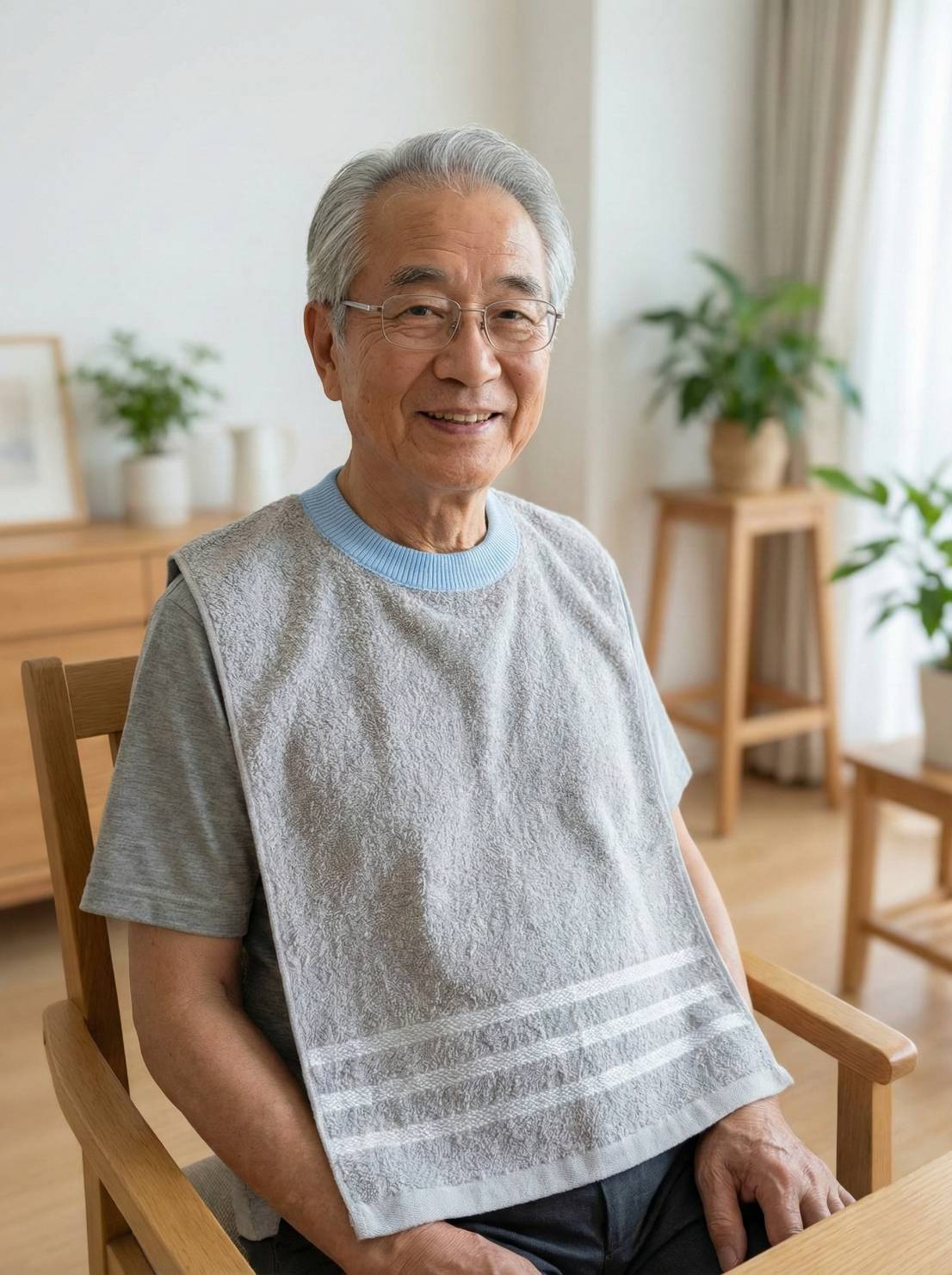 彈性套頭毛巾圍兜 無束縛感 透氣吸水好清洗 看護餵食毛巾