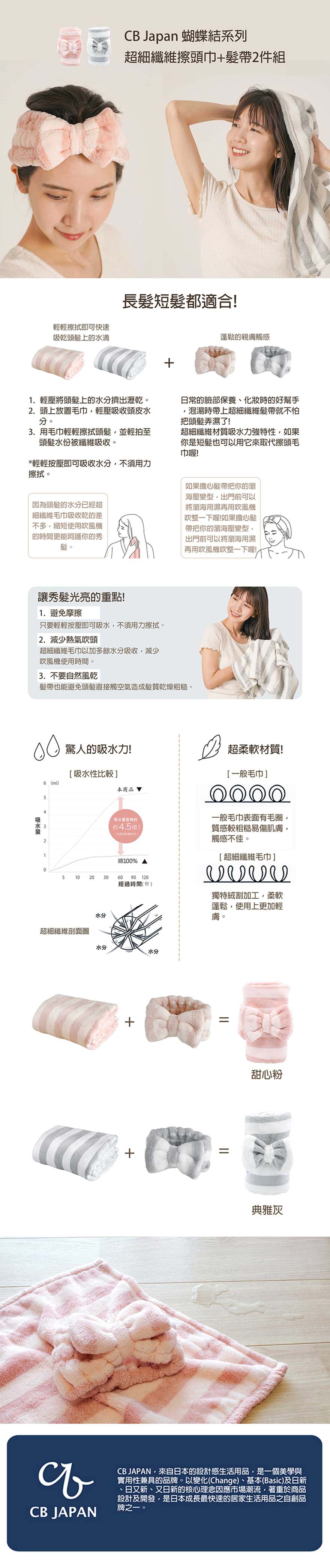 【CB JAPAN】蝴蝶結系列超細纖維擦頭巾+髮帶2件組