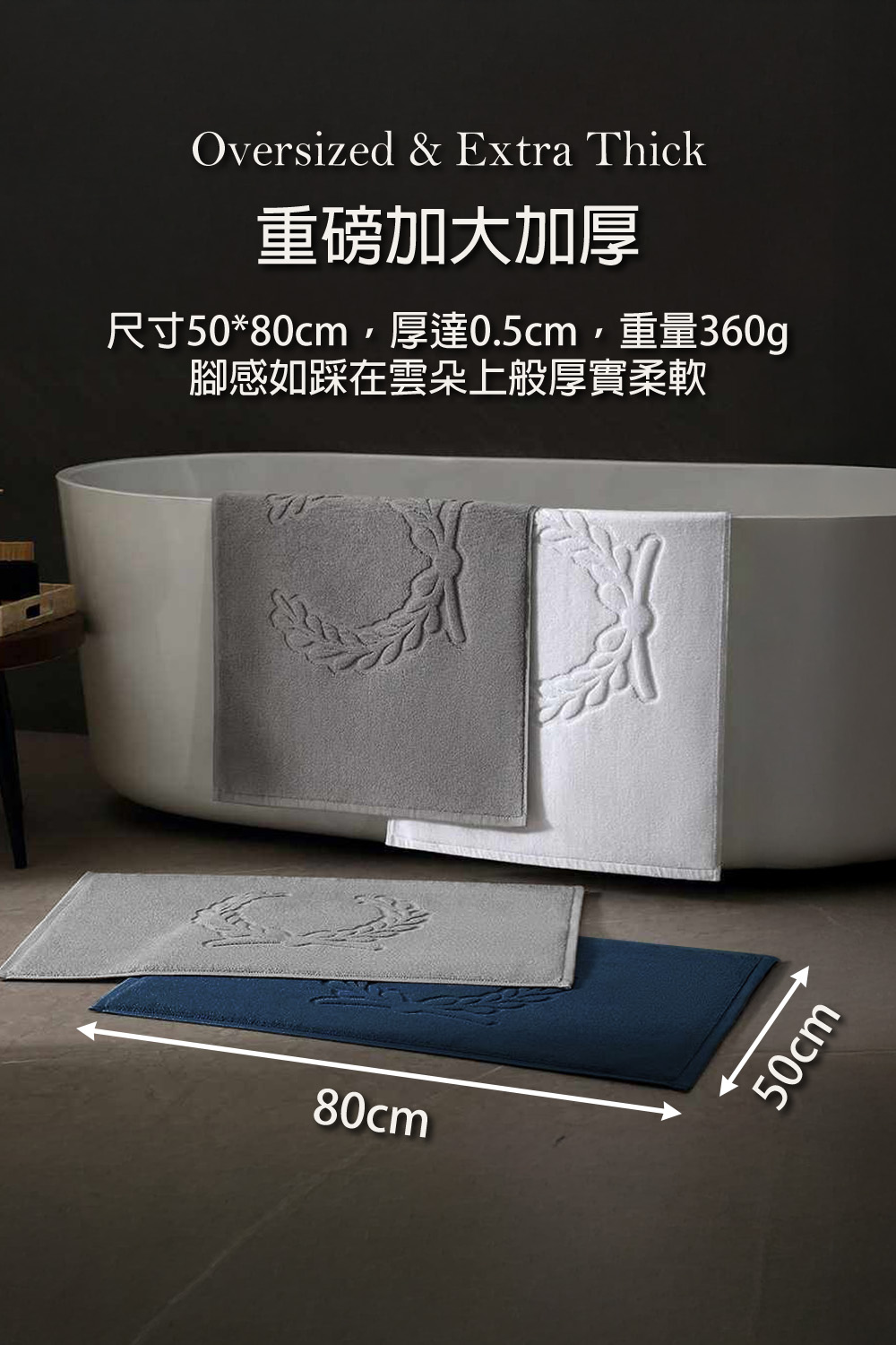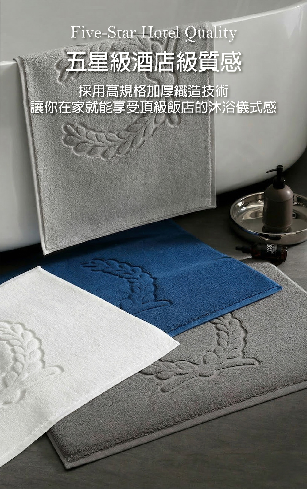 浴室腳踏墊【輕岩灰 50*80cm】五星級飯店地墊 浴室地毯 踏墊 吸水墊 100%純棉 瞬吸速乾 飯店風 麥穗壓花 精梳棉