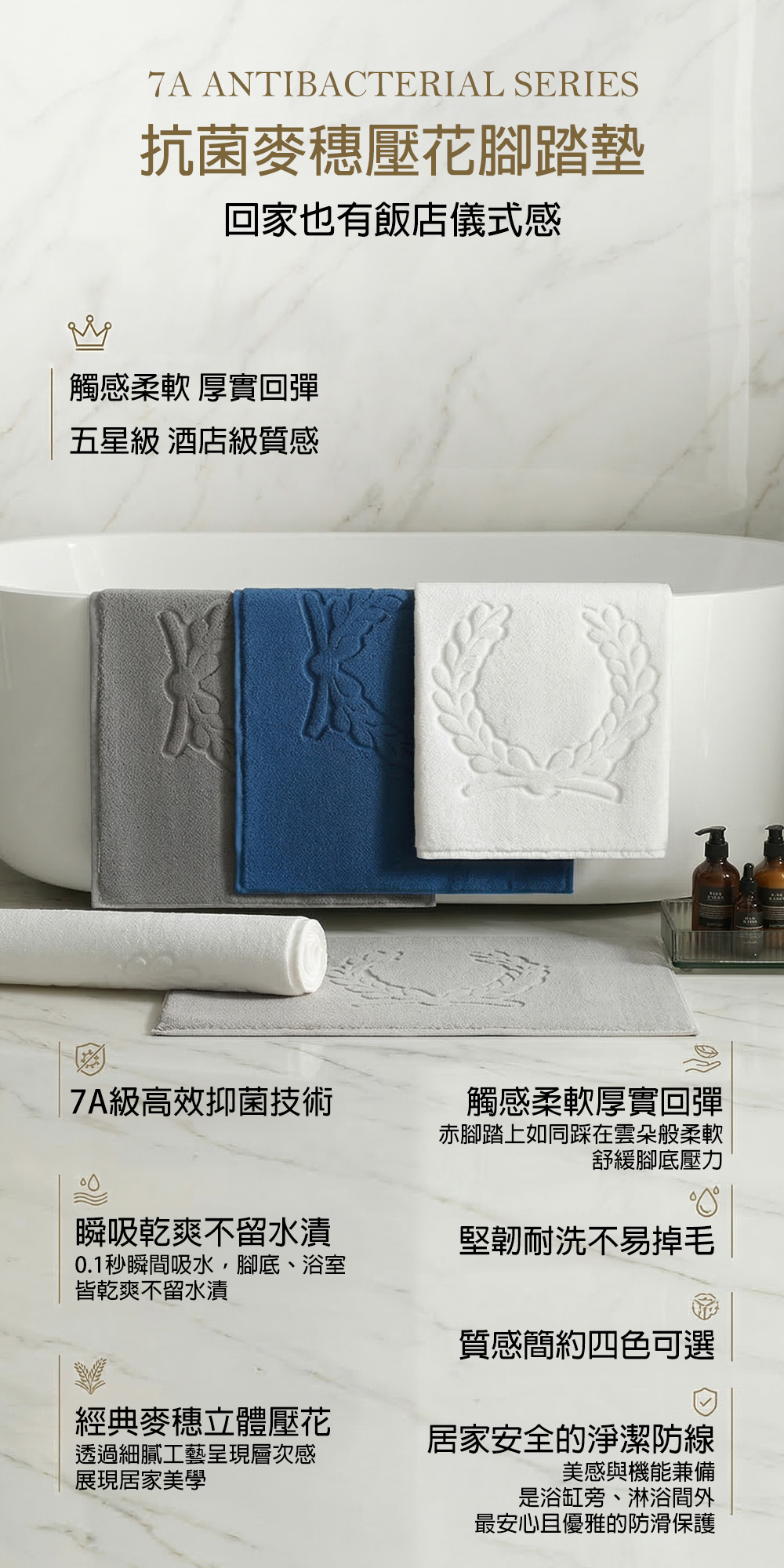 採用立體麥穗壓花工藝,不僅是浴室的顏值擔當