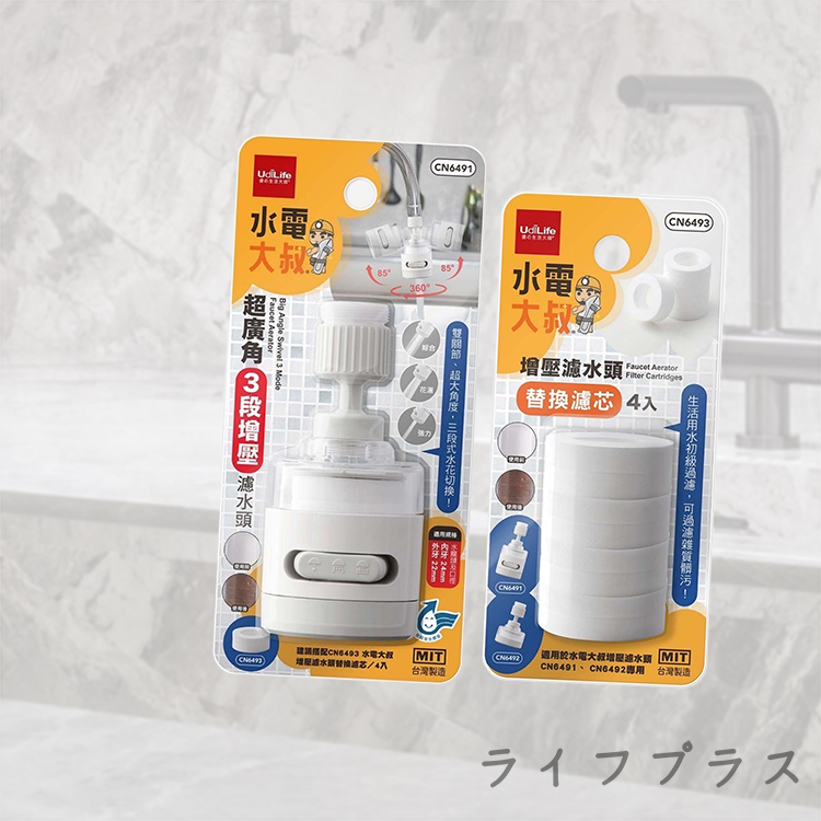 水電大叔/超廣角3段增壓濾水頭X1支+替換濾心-4入X2組