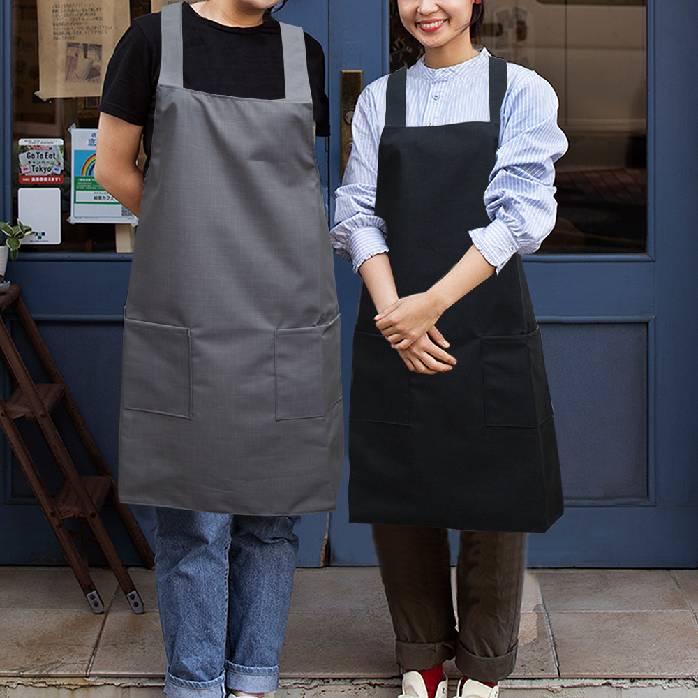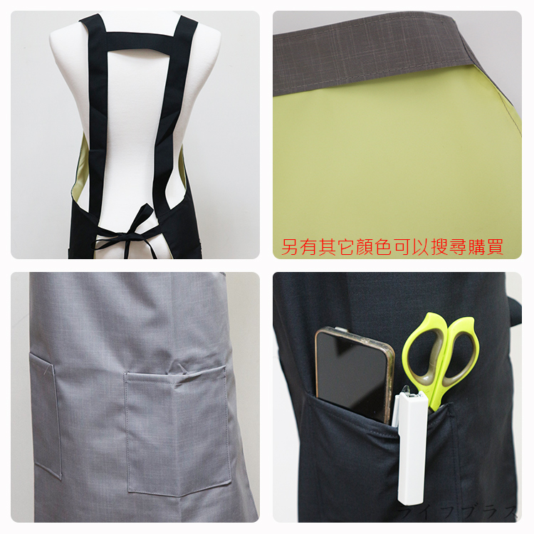素色防水二口袋圍裙-4件