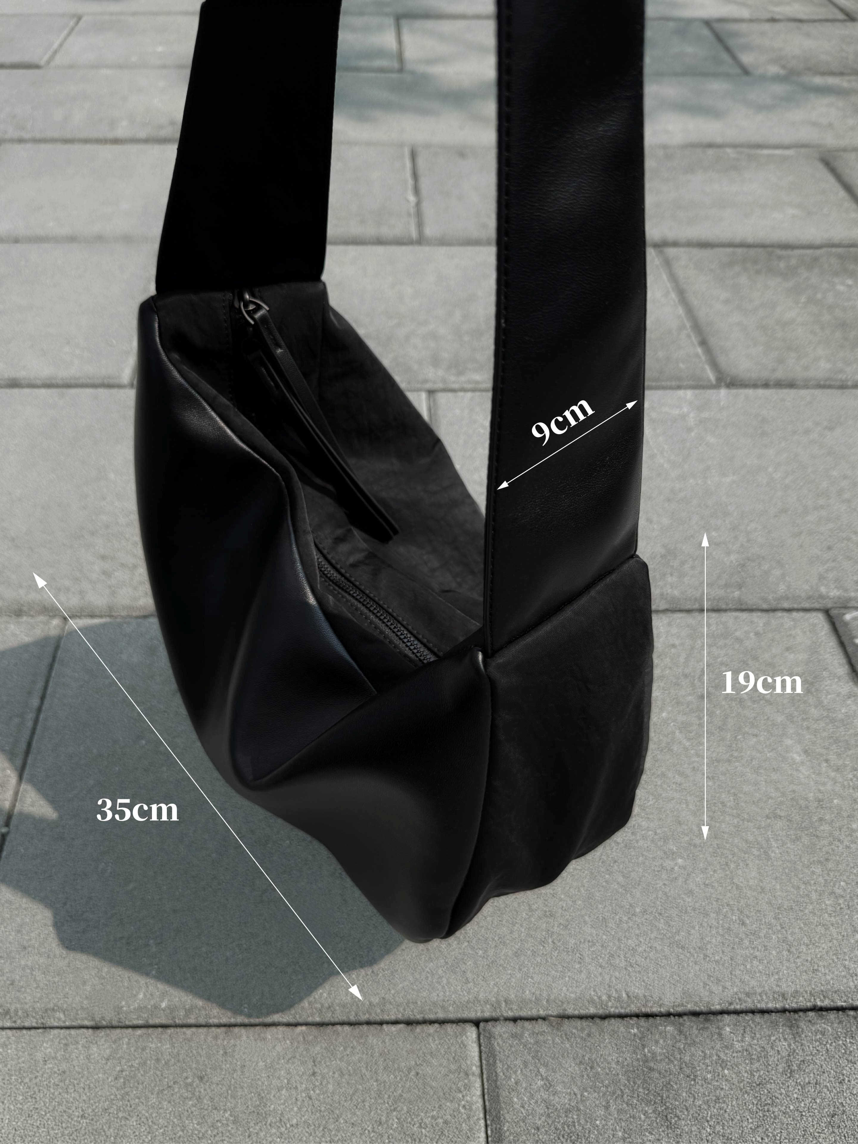包包外觀精簡,沒有明確正反 可依穿搭風格與場合,自由切換背法。