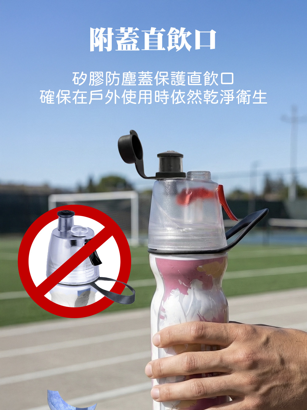 專為戶外運動與高溫環境設計,結合「直飲」與「噴霧」雙效功能