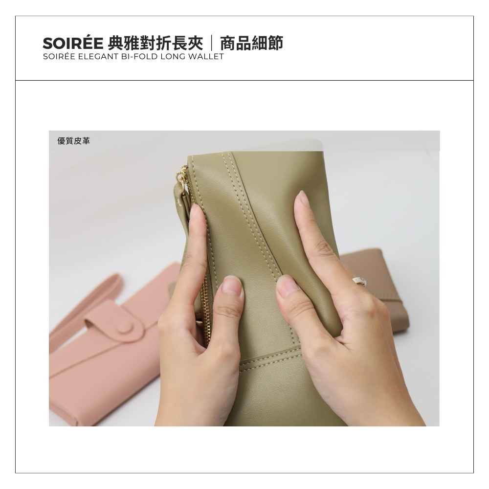 【產品介紹】柔軟細緻合成皮革,質感細膩耐用。★ 經典對折設計,輕巧好攜帶★ 內含9個卡槽(含1個透明證件卡位)★ 一個零錢收納層,兩個雜物收納夾層(鈔票、發票、護身符、雜物等)材質:合成皮革結構:長夾 / 對折夾尺寸:19 x 9.5 x 2.5 cm重量:180 g顏色:櫻花粉、奶茶色、黑色、灰棕、灰綠、卡其#短夾 #皮夾 #女夾 #典雅風#荔枝紋 #韓系 #簡約 #通勤#女性 #上班族 #約會 #禮物首選#情人節禮物 #七夕 #聖誕節禮物