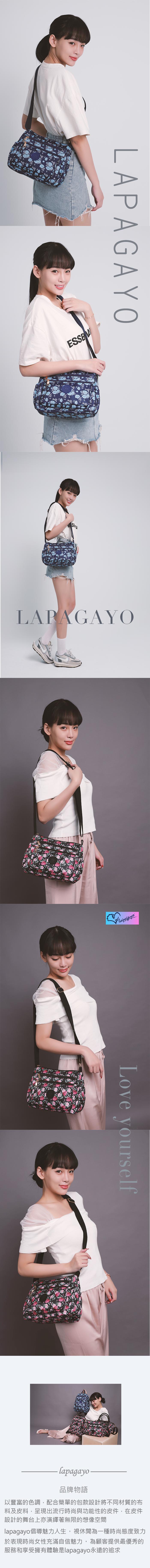 【lapagayo】典雅玫瑰尼龍側肩背包- PI-06399A-2-56藍色
