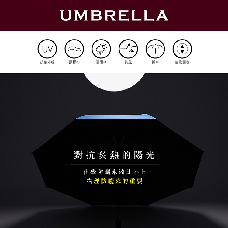 大傘面全遮光黑膠布自動摺疊傘-27吋-神秘黑-1支
