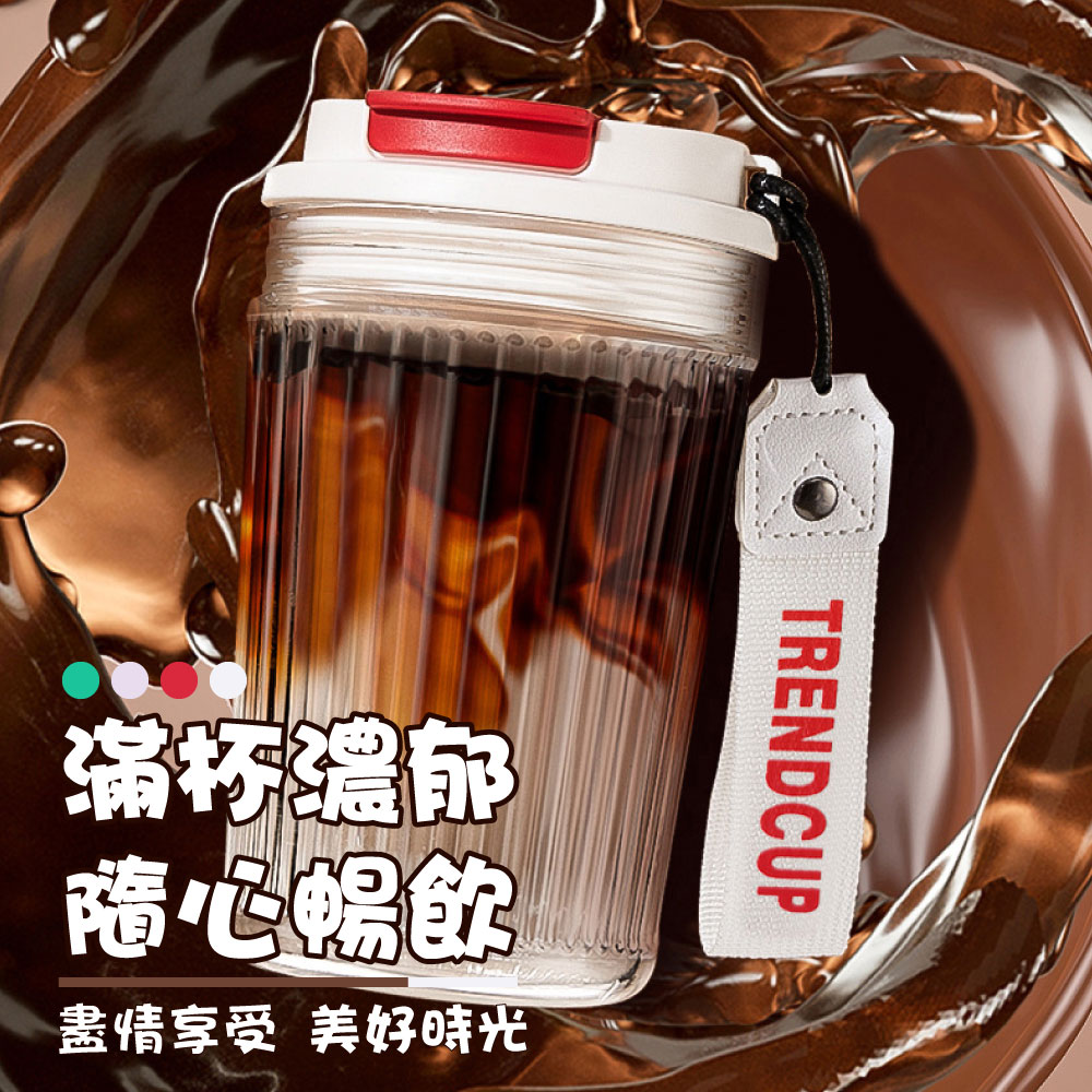 撞色玻璃隨手杯【胭脂紅400ml】咖啡杯 撞色隨手杯 玻璃隨身杯 咖啡隨手杯 隨行杯 水杯 耐冷耐熱 條紋玻璃杯 透明玻璃杯 玻璃杯
