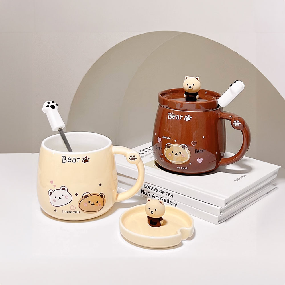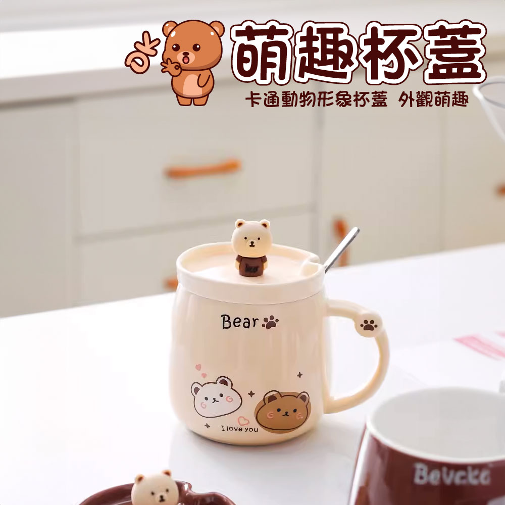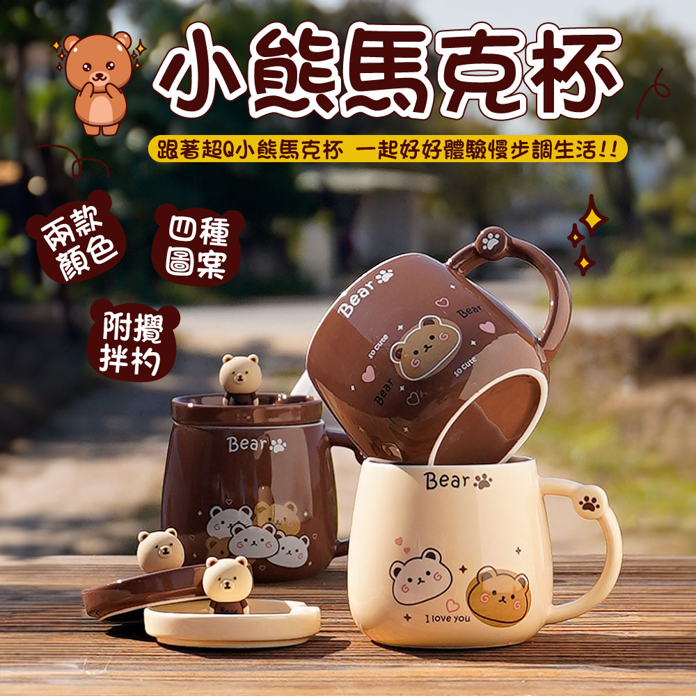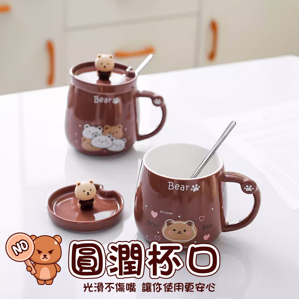 小熊馬克杯【團結小熊】 小熊造型馬克杯 馬克杯 水杯 杯子 附贈攪拌勺 陶瓷水杯 可愛小熊馬克杯