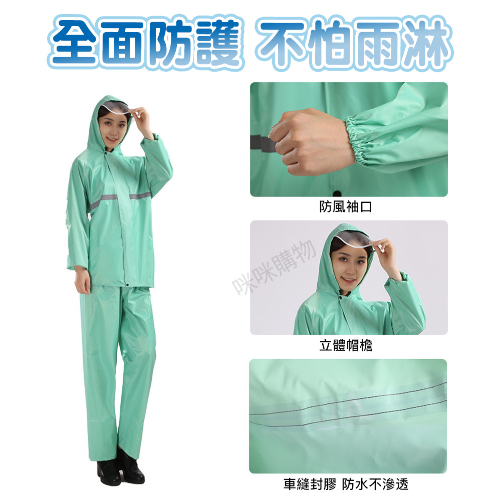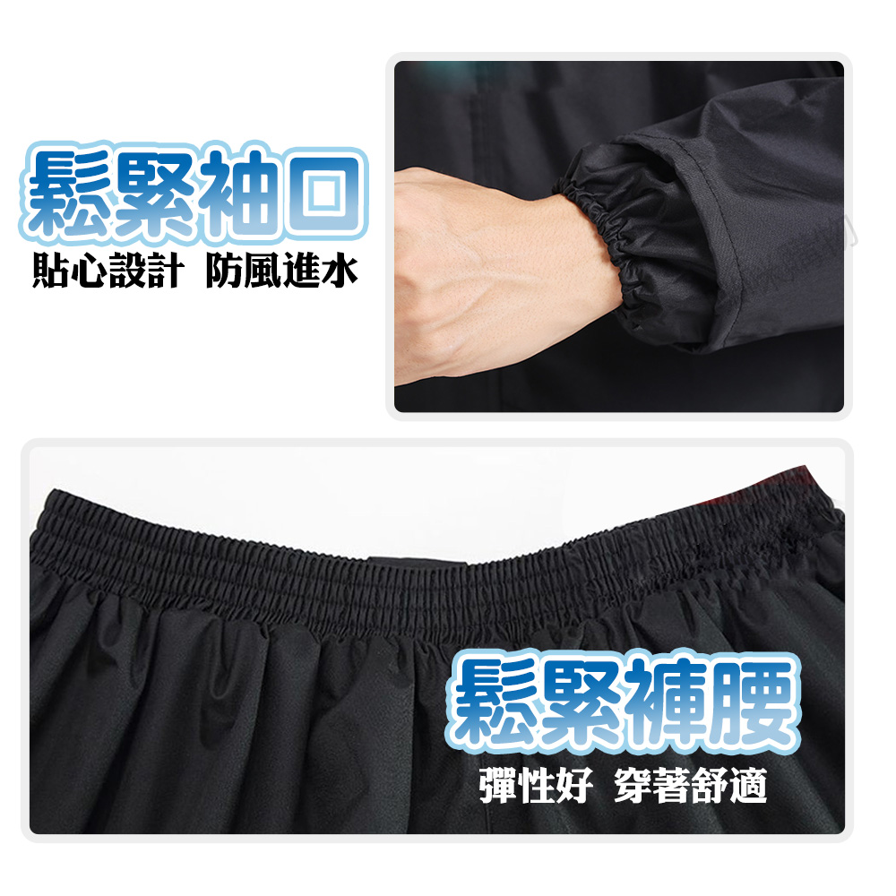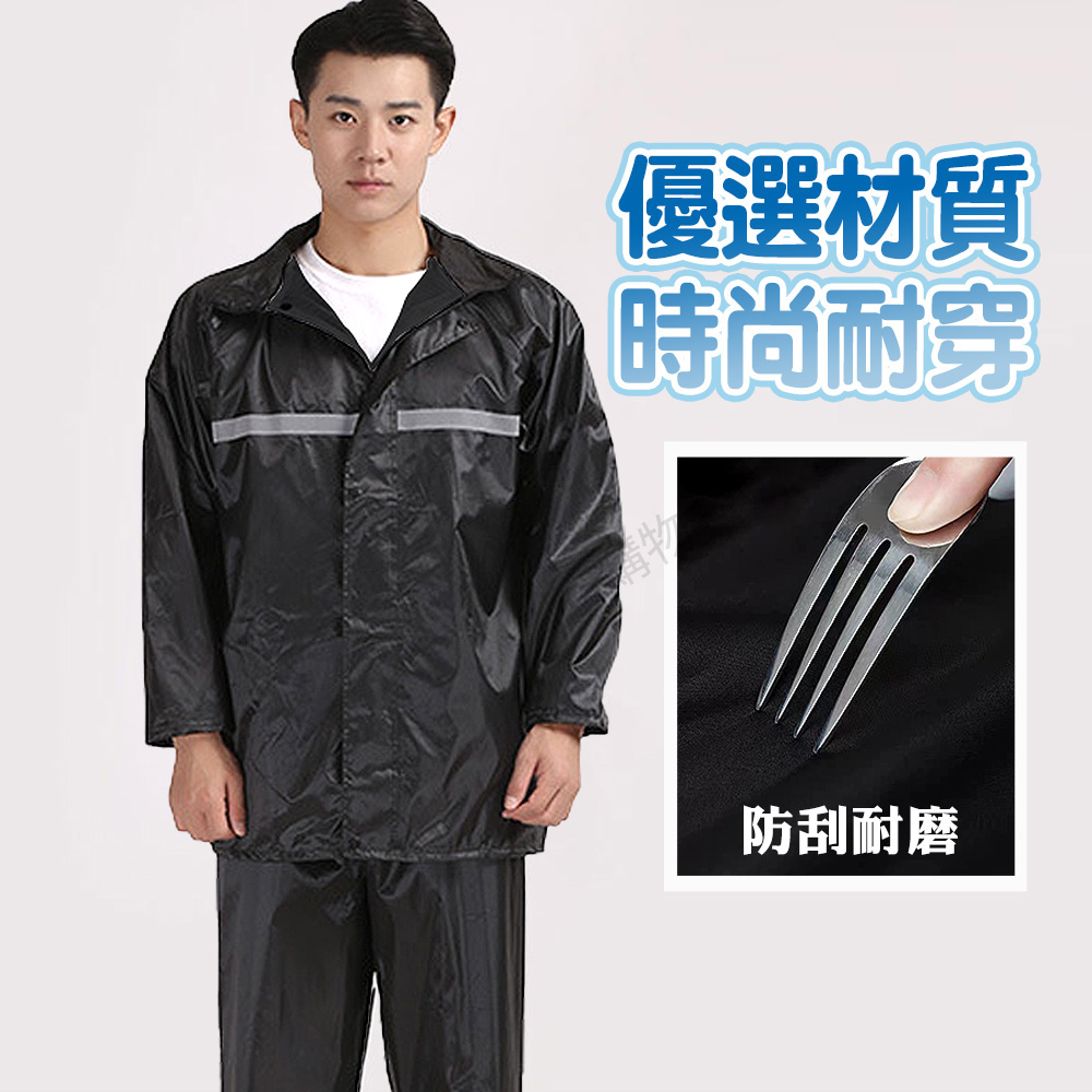 兩件式雨衣,上衣與外褲分開,保護更全面。