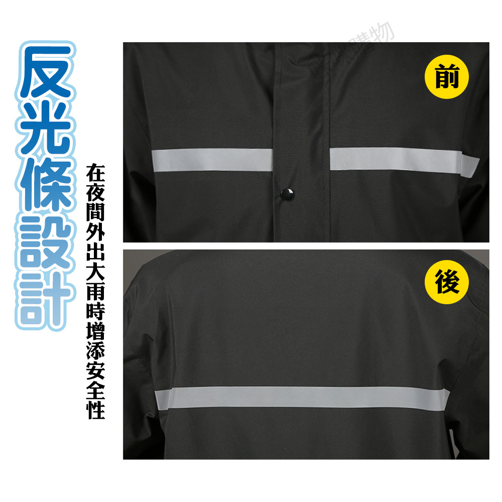 上衣正反面皆有安全反光條,大雨出門也放心。