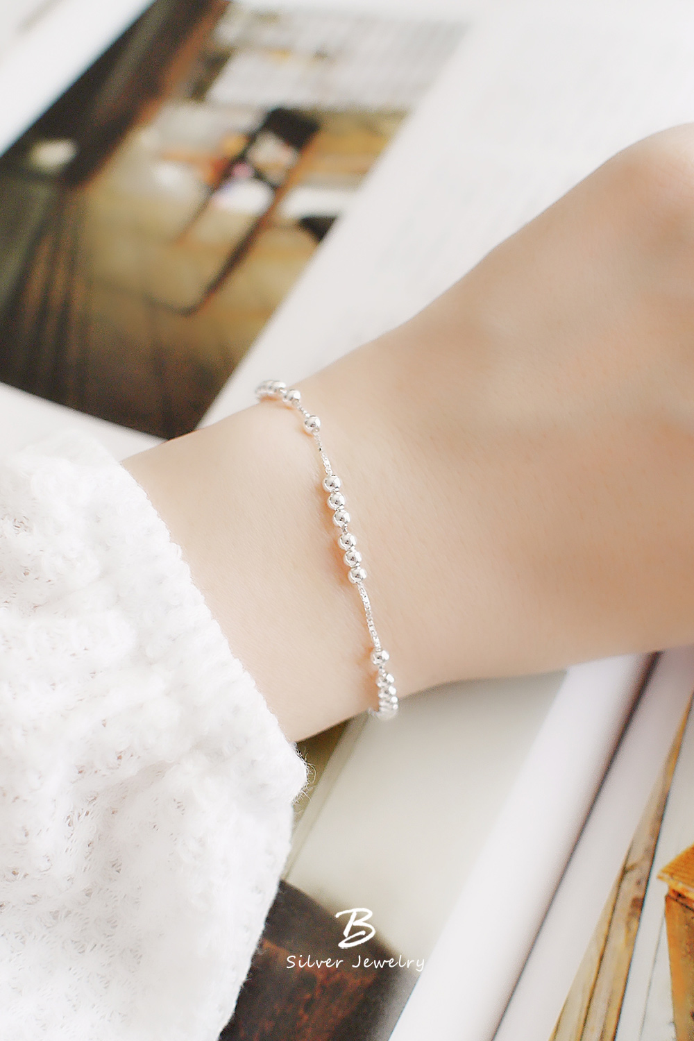 【BLUMA銀飾】925純銀串珠手鏈 小圓球純銀手鍊 女生禮物
