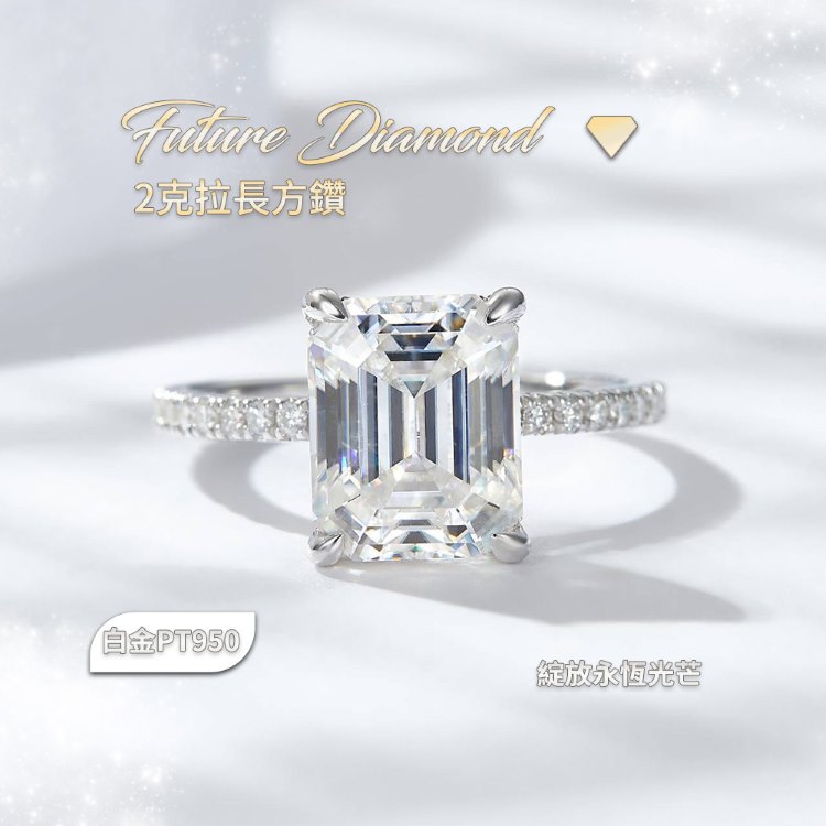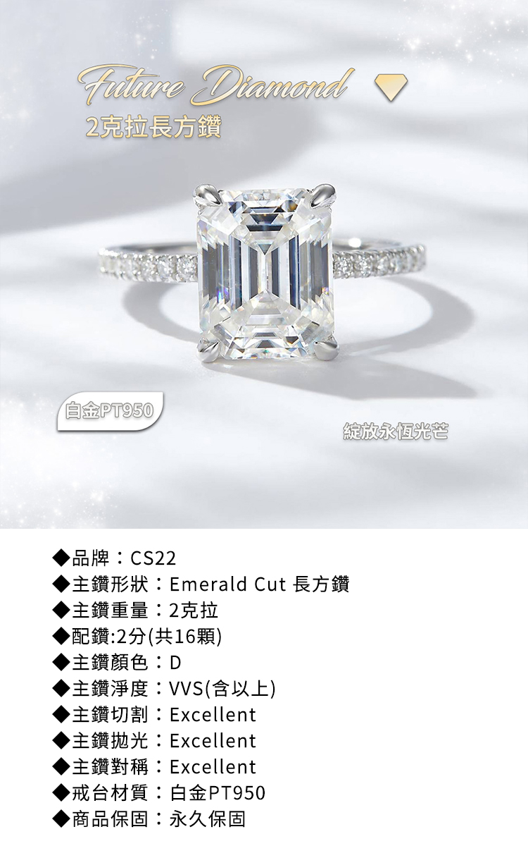 ◆品牌:CS22◆主鑽形狀:Emerald Cut 長方鑽◆主鑽重量:2克拉