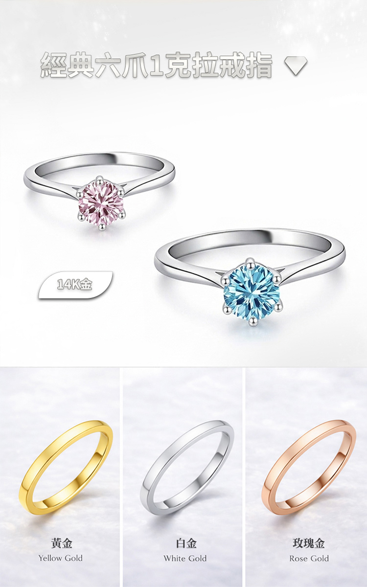 【CITY STAR】IGI經典六爪1克拉鑽戒(14K金)-藍鑽 (D / VVS 以上 / 3EX)