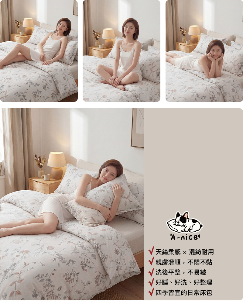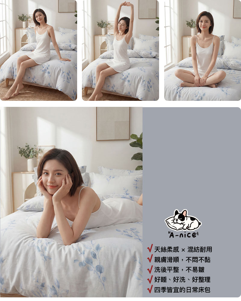 A-nice 台灣製 天絲床包枕套組 萊賽爾柔感床包 單人3.5呎