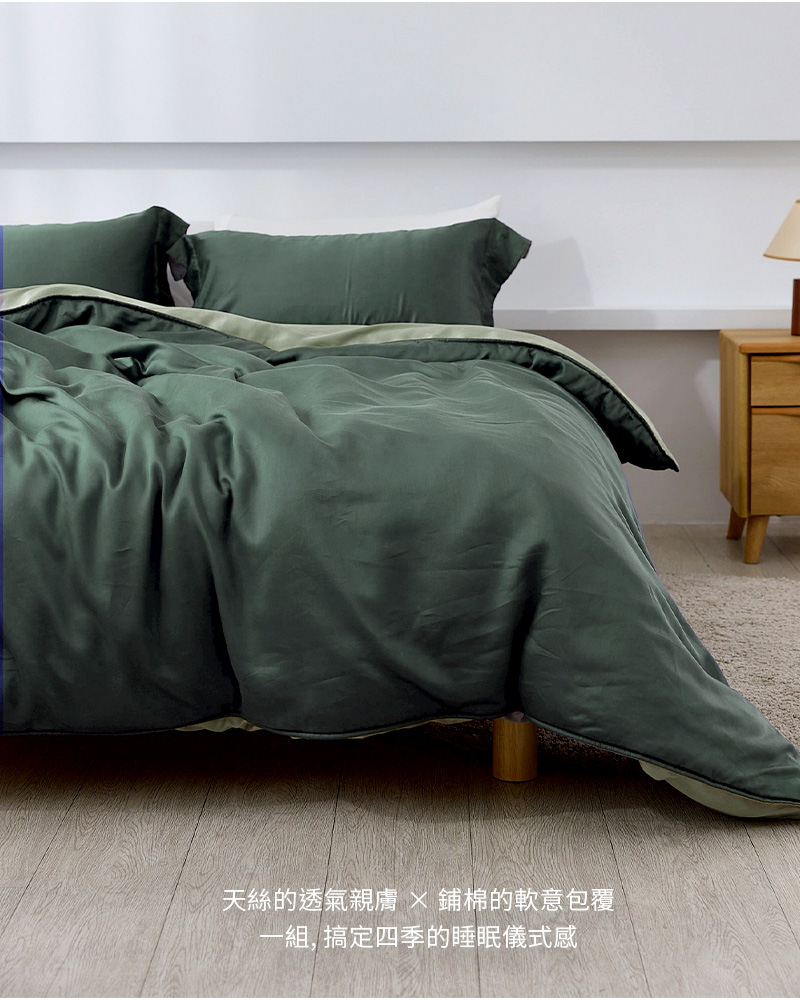 [A-nice] 台灣製 60支天絲 鋪棉兩用被組(雙人/加大 100%萊賽爾 素色撞色設計)