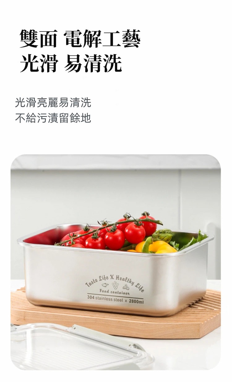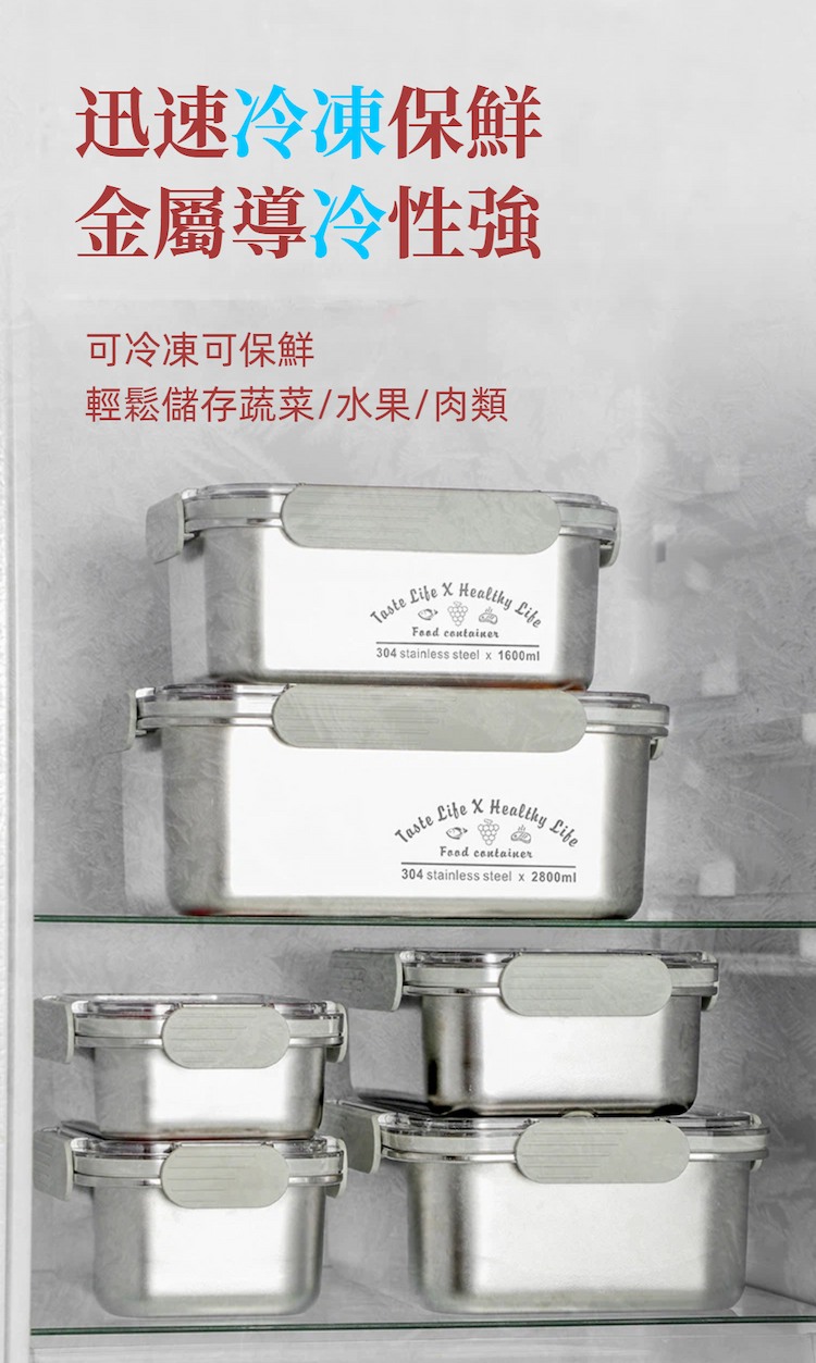內容物 : 304不鏽鋼密封保鮮盒 ( 2400ml + 2800ml ) x1