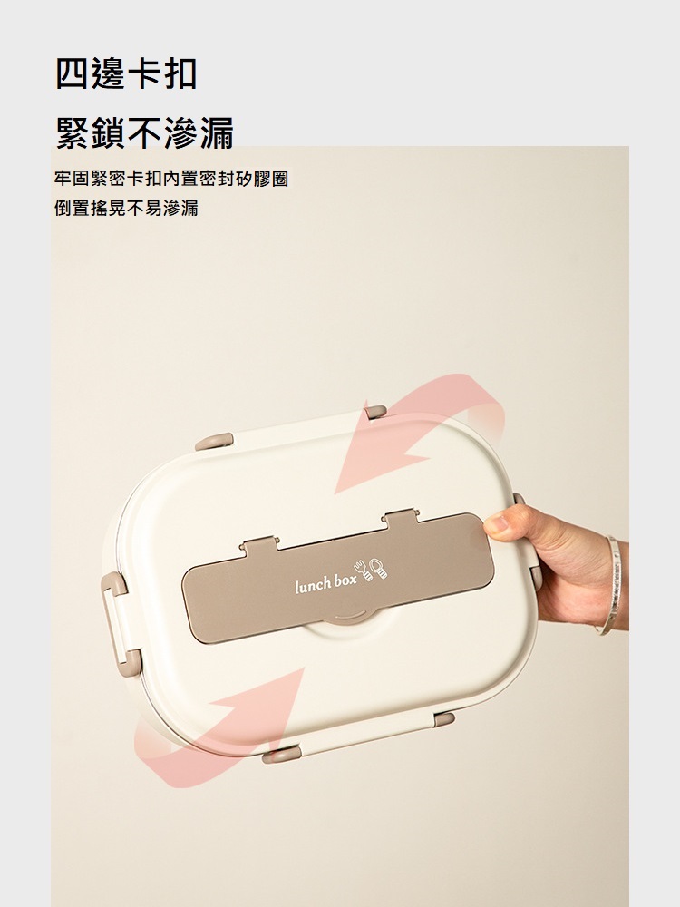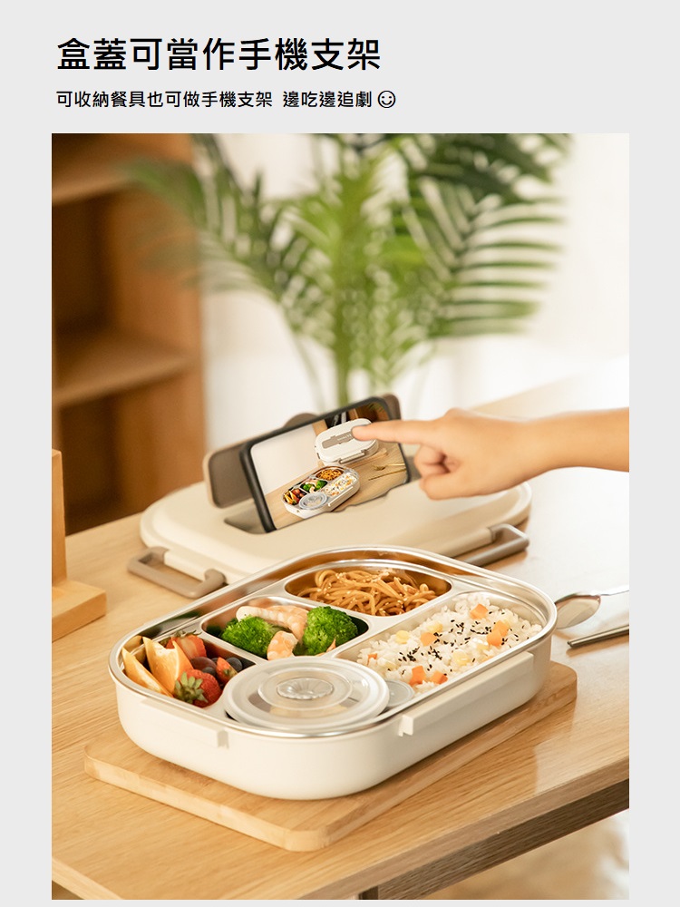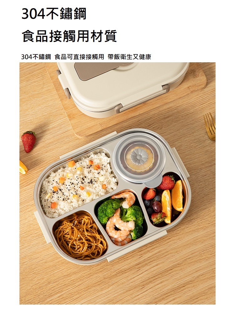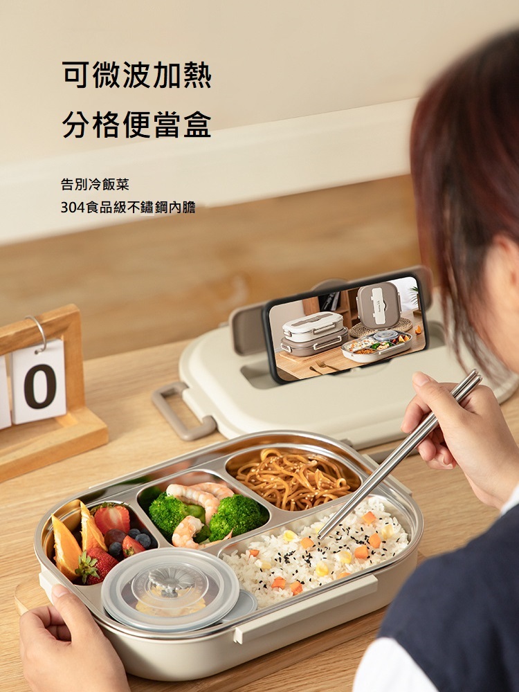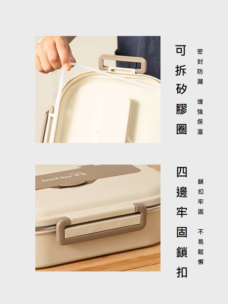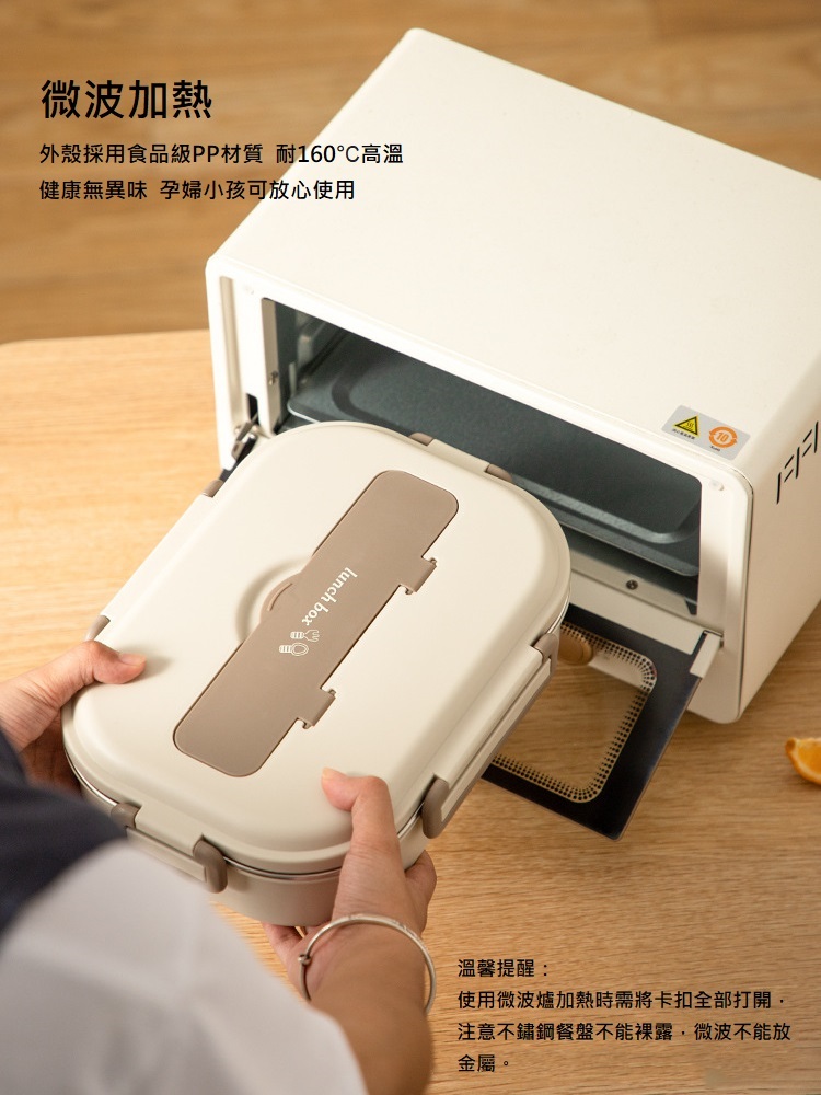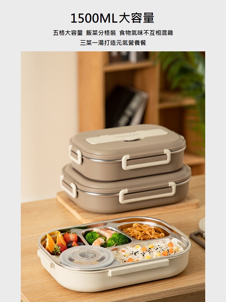 【A&R】日式304不鏽鋼五格微波便當盒附贈湯碗+餐具 1500ML 材質:304不鏽鋼內膽+食品級PP外殼(耐160度高溫) 顏色:拿鐵咖容量:1500ML 使用方式:可直接微波、可當便當盒、不漏水 尺寸:「五格便當盒」26x19x5cm 「湯碗」直徑10cm、高度4cm 「不鏽鋼筷子」長18cm、「不鏽鋼湯匙」長16cm 產地:China 溫馨提醒: *使用微波爐加熱時需將卡扣全部打開,注意不鏽鋼餐盤不能裸露,微波不能放金屬。 *長期使用,表面汙染嚴重時,浸入食醋水中清洗,可保持原有鮮明的不鏽鋼光澤 *因測量方式不同,稍有誤差,具體以實物為準。 ● 商品圖片顏色可能因透過電腦介面呈現而有色差情形,故請以實際收貨的商品顏色為準。 ● 依照消費者保護法規定,消費者均享有產品到貨七天猶豫期之權益,但退回產品必須是回復原狀,亦即必須回復至您收到商品時的原始狀態且包裝完整(保持產品、附件、包裝、廠商紙箱及所有附隨文件或資料之完整性)。● 本產品一經拆封使用過後,除產品本身瑕疵,或須另支付商品整新費用。# #A&R #日式 #304不鏽鋼 #五格 #微波 #便當盒 #湯碗 #餐具 #1500ML #保溫 #大容量 #餐盒 #環保便當盒