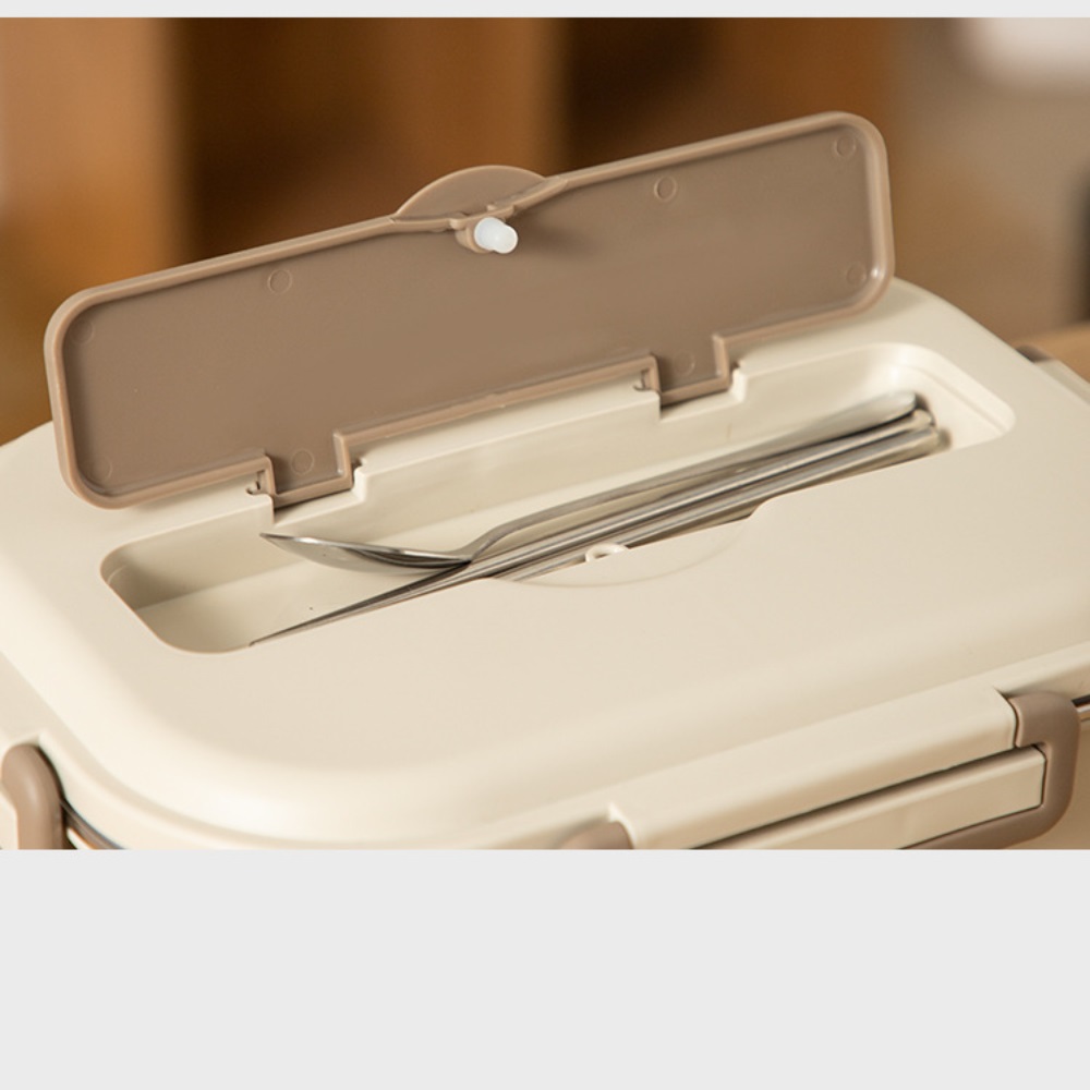 【A&R】日式304不鏽鋼五格微波便當盒附贈湯碗+餐具 1500ML 拿鐵咖