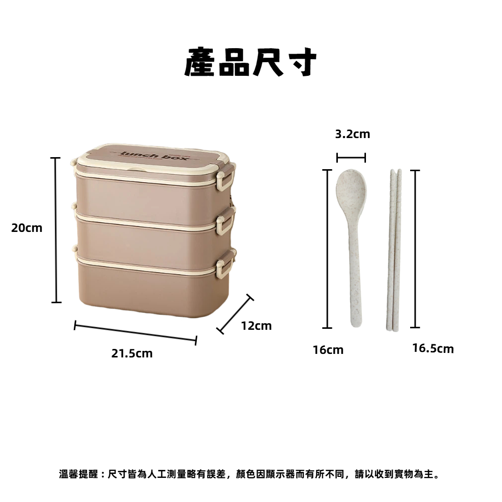 尺寸 : 便當盒 21.5x20x12cm、筷子 16.5cm、湯匙 16x3.2cm