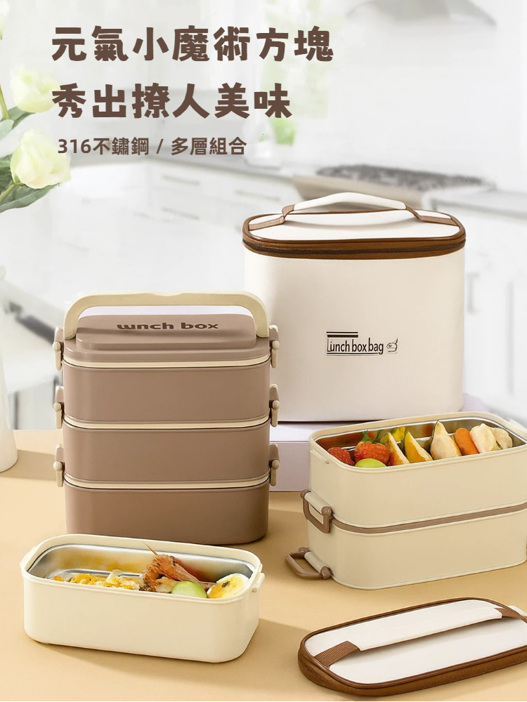 內容物 : 316不鏽鋼三層便當盒x1+餐具組(筷子x1+湯匙x1)+保溫袋x1