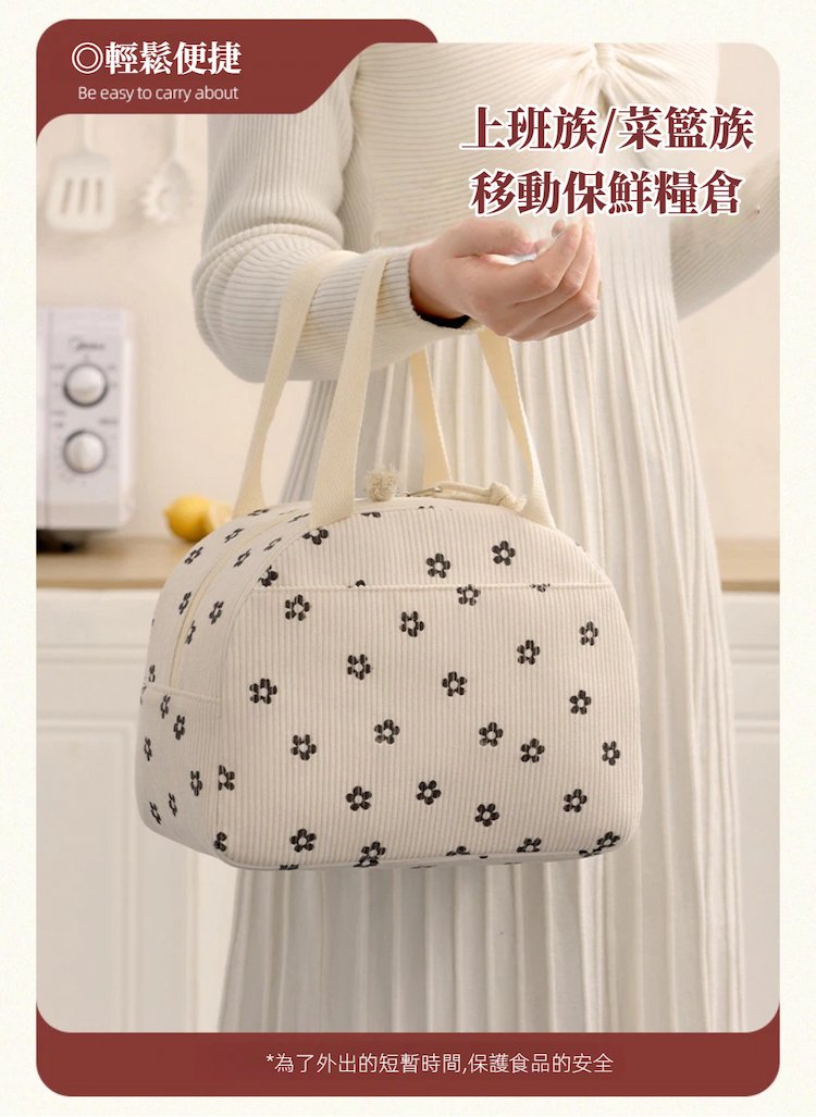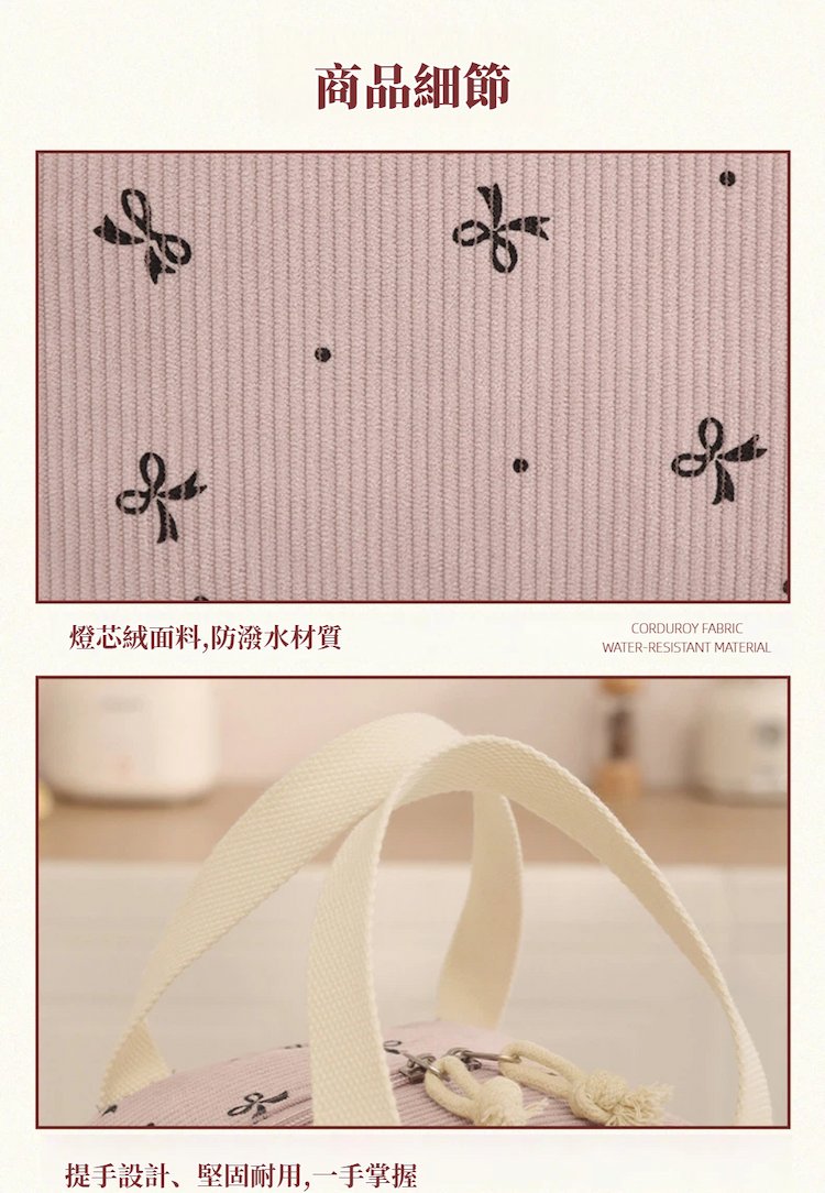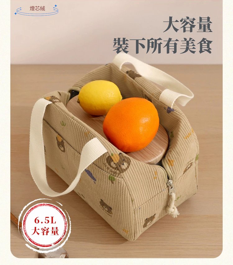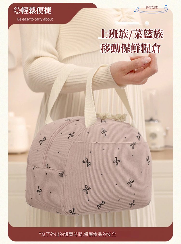 #A&R #韓系 #燈芯絨 #保溫 #保冷 #手提 #便當袋 #小款 #防潑水 #大容量 #雙頭拉鍊 #野餐袋 #上班族 #學生 #戶外 #野餐