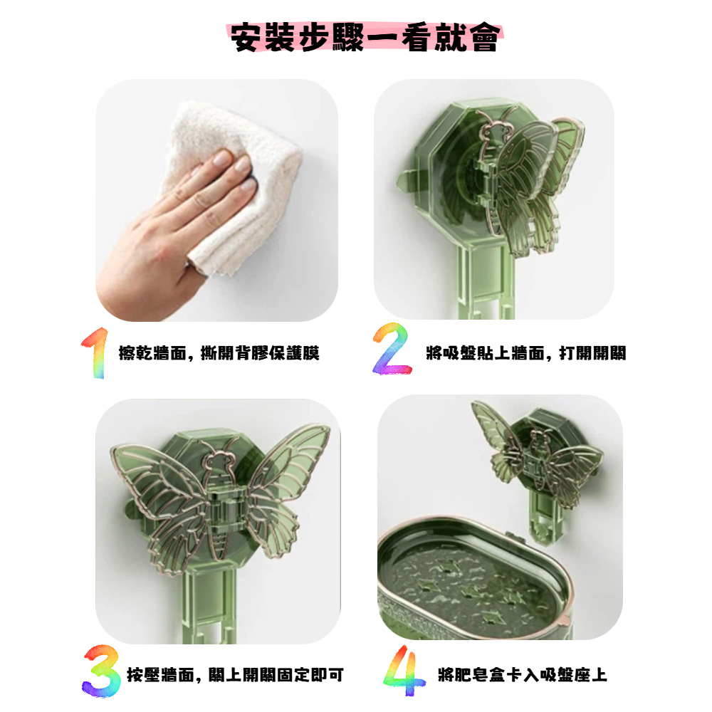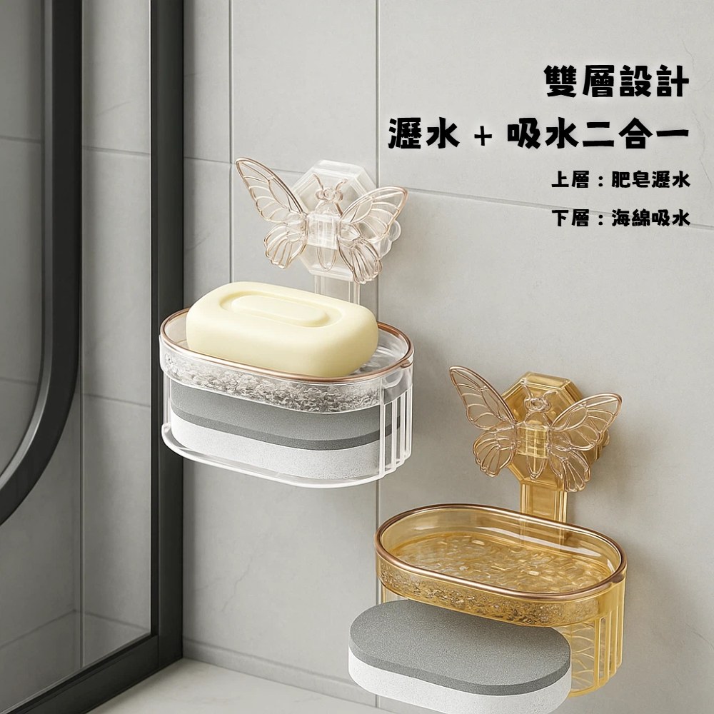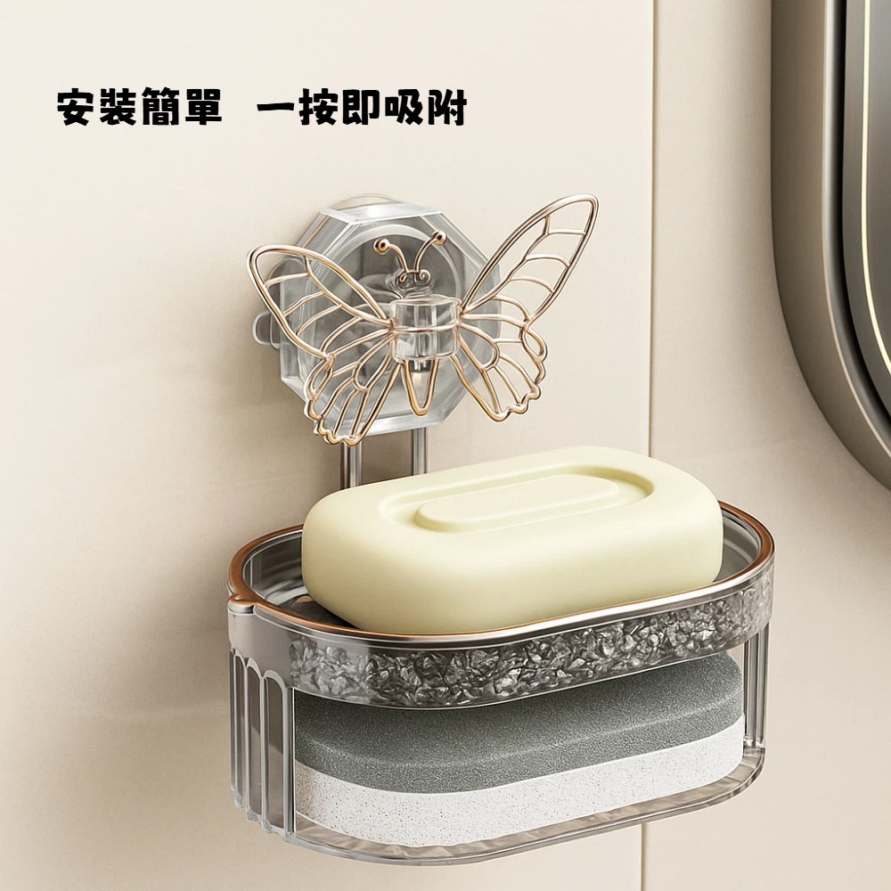 【A&R】北歐風輕奢蝴蝶美型雙層香皂盒 免打孔吸盤款 四色任選