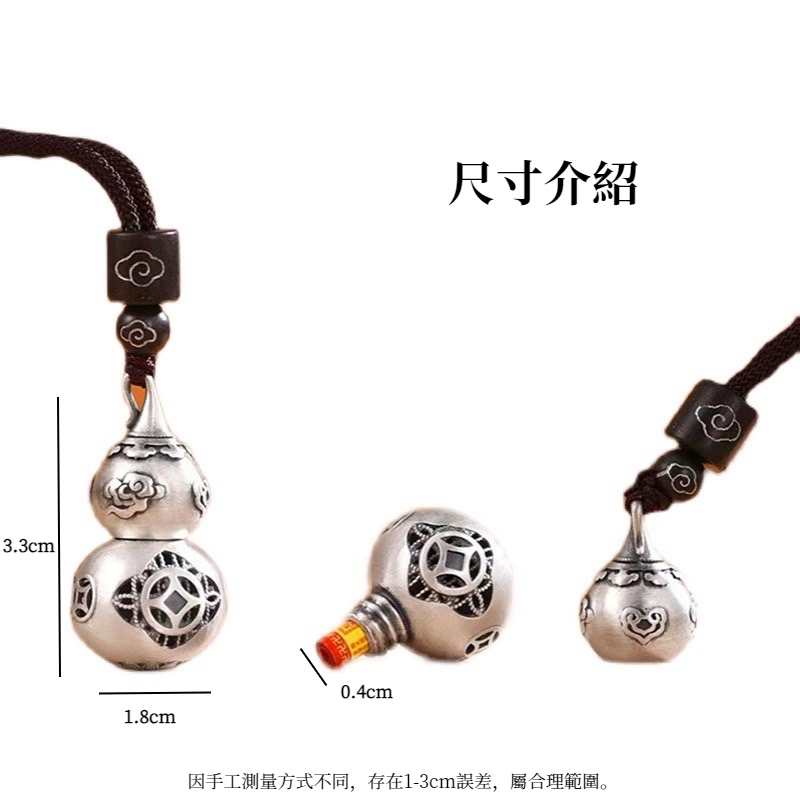 【A&R】精雕鏤空金錢葫蘆款吊墜附楞嚴咒經文產品材質:白銅鍍銀+棉繩產品尺寸:長度3.3cm、寬度1.8cm、口徑0.4cm(蓋子可開啟)棉繩尺寸:總長68cm產品重量:14g產品產地:China內容物:葫蘆款吊墜x1、楞嚴咒經文x1包裝採用精美絨布飾品袋(隨機出貨)溫馨提醒 :商品因手工測量方式不同,存在1-3cm誤差,屬合理範圍。商品圖檔顏色因電腦螢幕設定差異會略有不同,以實際商品顏色為準,請見諒。保存方式 :平日活動皆可配戴,但請勿配戴接觸溫泉、漂白水等化學藥物。長時間不配戴請清理後擦乾放入密封袋,隔絕空氣中氧化分子以便保存,建議勿使用洗銀水,拭銀乳,酒精等化學腐蝕性較強之商品,會傷害首飾表層。#A&R #精雕 #鏤空 #金錢 #葫蘆 #吊墜 #楞嚴咒經文 #趨吉避凶 #順心轉運 #招財 #護身符 #項鍊 #