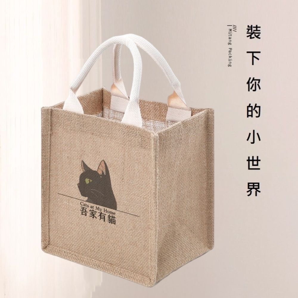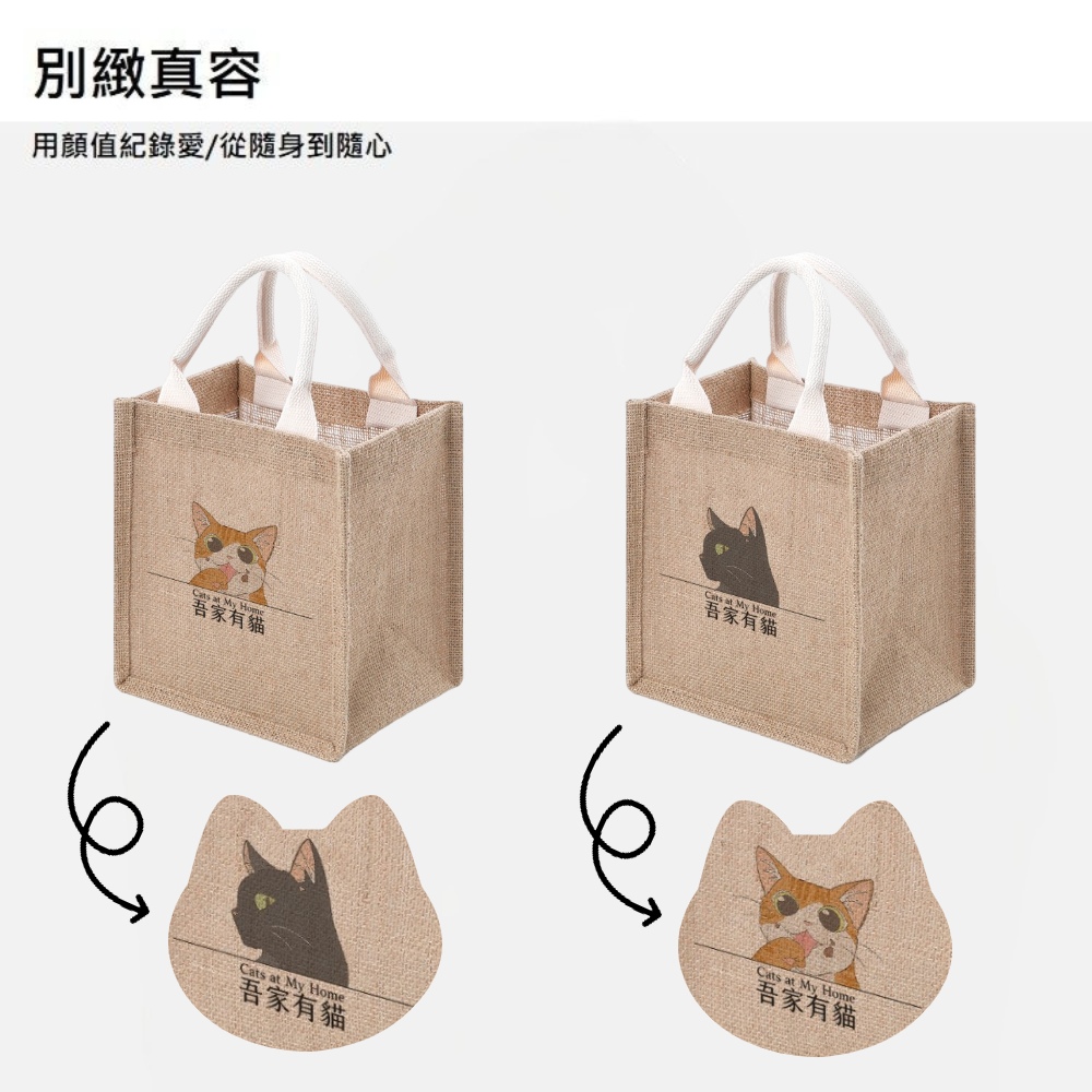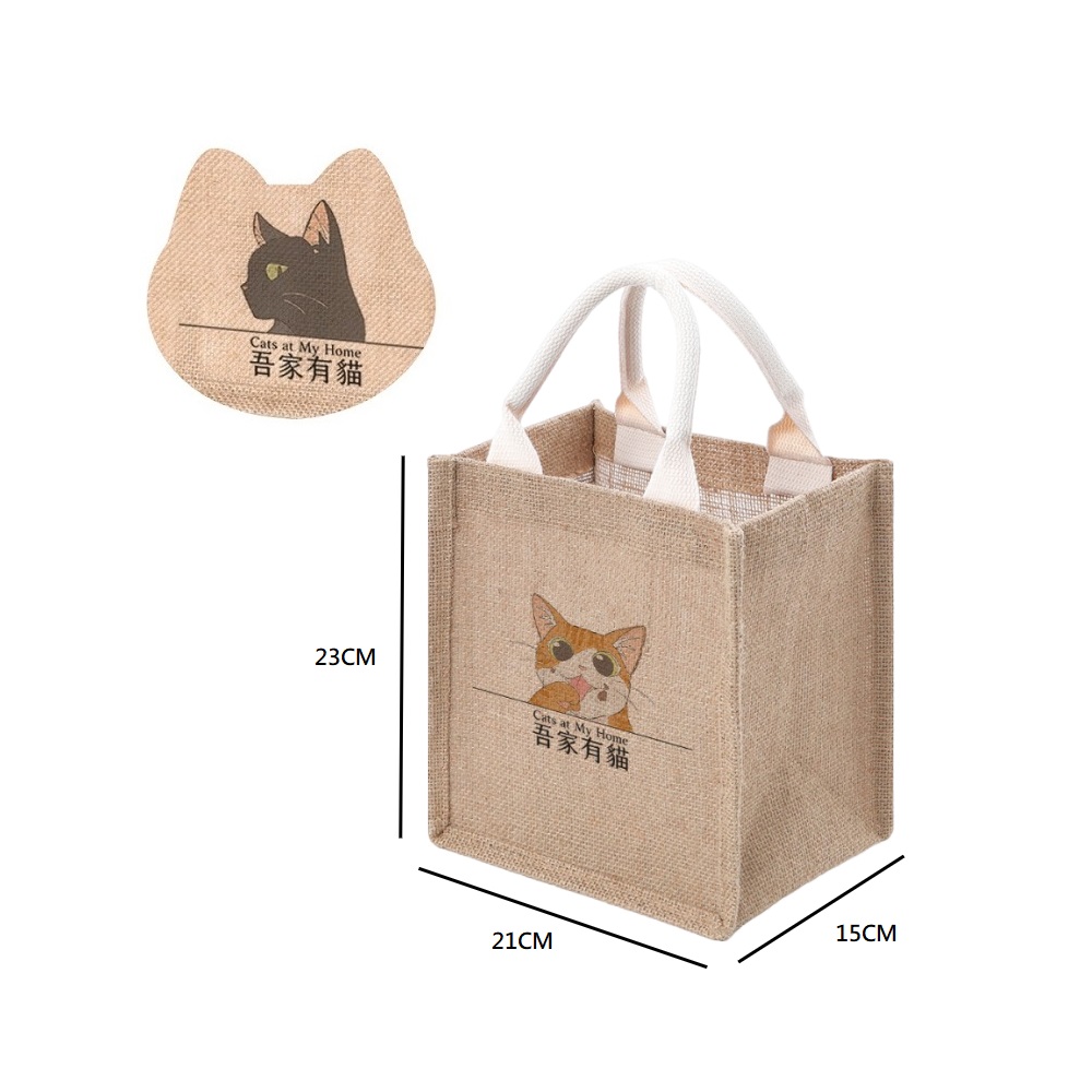 【A&R】吾家有貓無印風單貓雙面款手提袋 小款產品材質 : 黃麻內裡材質 : 防水淋膜手提繩材質 : 棉麻手提繩包芯產品顏色 : 黃麻卡其色產品尺寸 : 包芯手提繩21x23x15cm、提手長度12cm產品產地 : China溫馨提醒 : 手工測量難免有誤差,以收到實體為主。產品為麻布材質,會有些許味道,使用幾日後,味道會散去;另材質會有些許毛絮皆為正常,不影響使用,謝謝〜# #A&R #吾家有貓 #無印風 #單貓 #雙面 #手提袋 #小 #俏皮 #可愛 #文青 #簡約 #防水 #收納袋 #便當袋 #購物袋 #環保袋